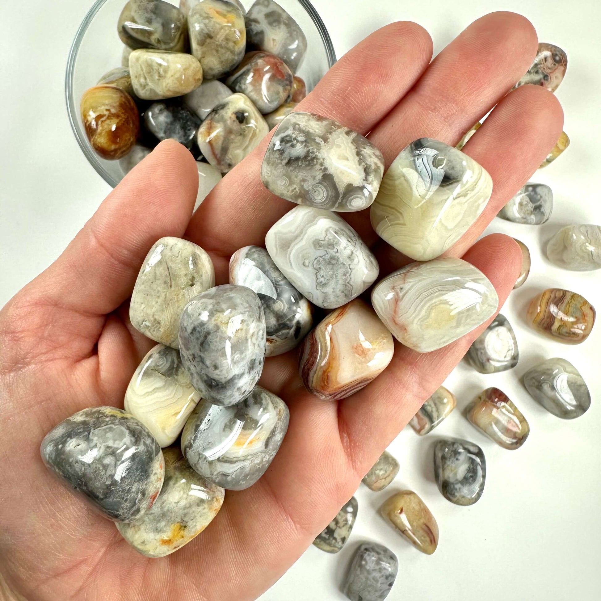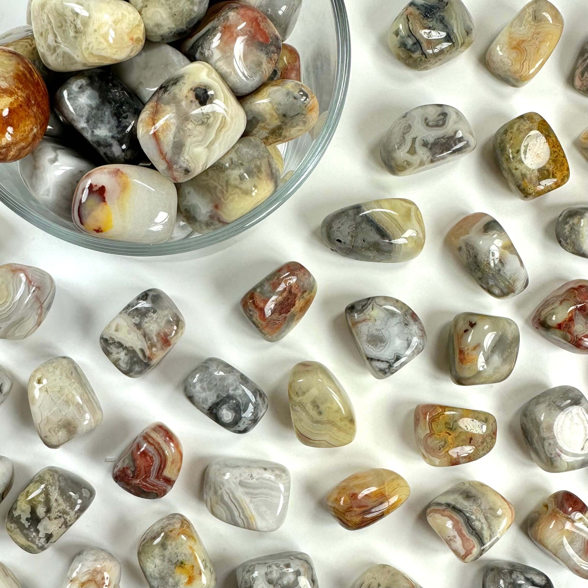 Crazy Lace Agat forekommer i et spektrum af farver, fra hvid og grå til rødlig og brunlig, ofte med indbydende, snoede båndmønstre. De mange farvevariationer gør den til en yndet sten for dem, der skaber smykker, da den kan tilføje en kraftfuld æstetik.