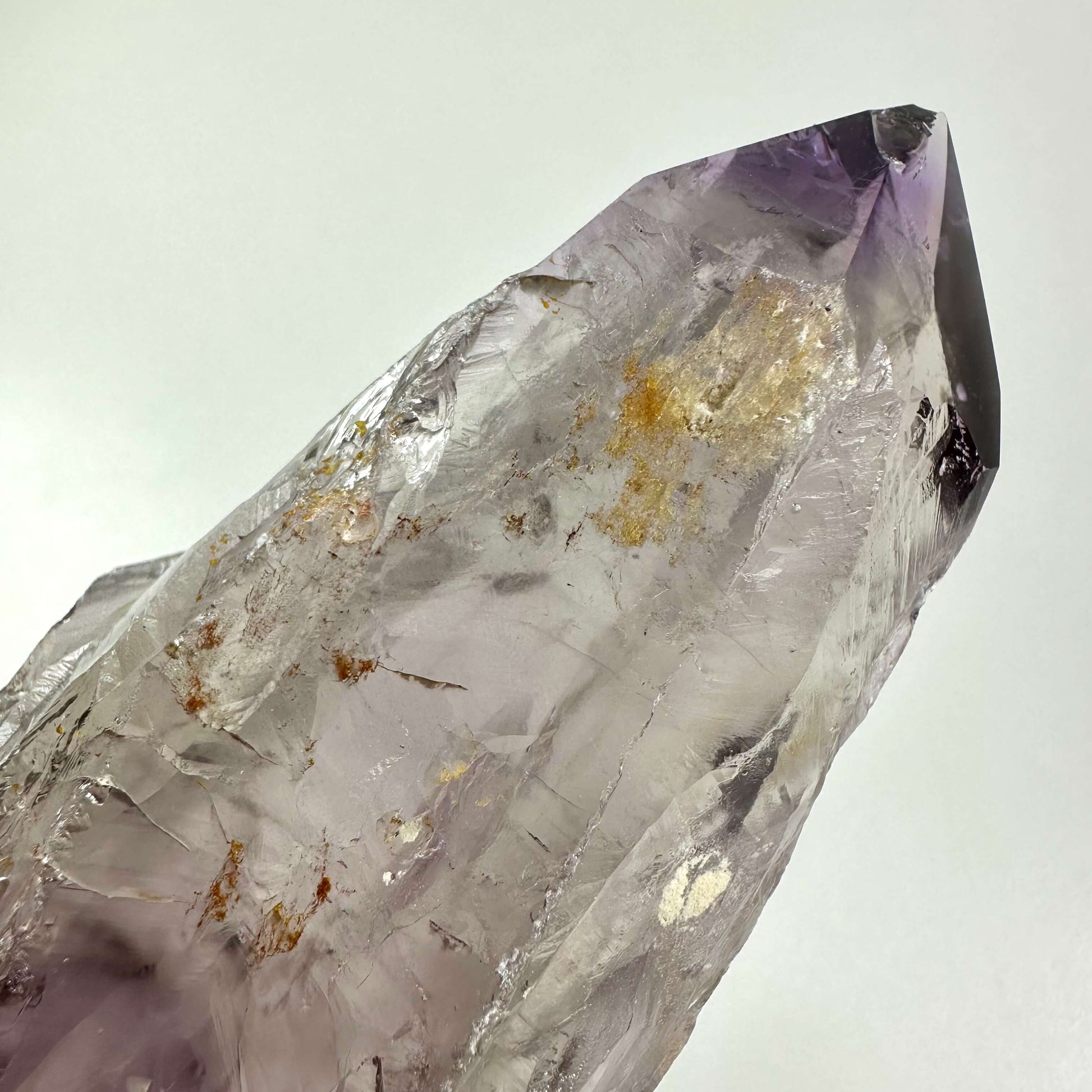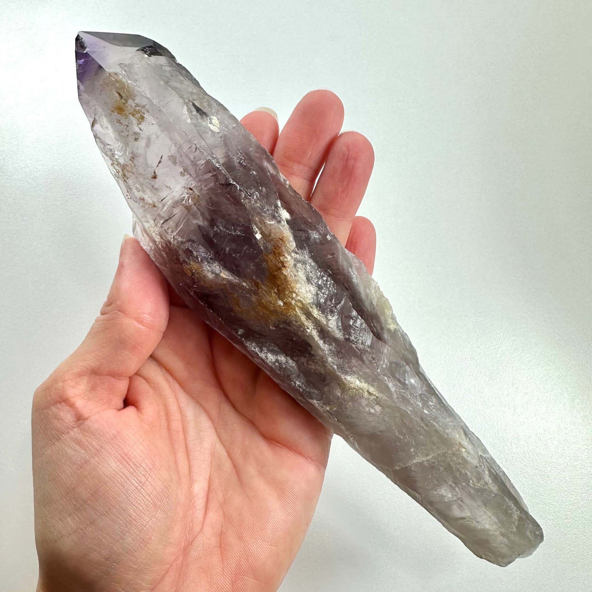 Ametyst septer nr 2 er en violet krystal med en mere klar kvartsbase, der skaber en beroligende energi og styrker intuition og spirituel forbindelse.