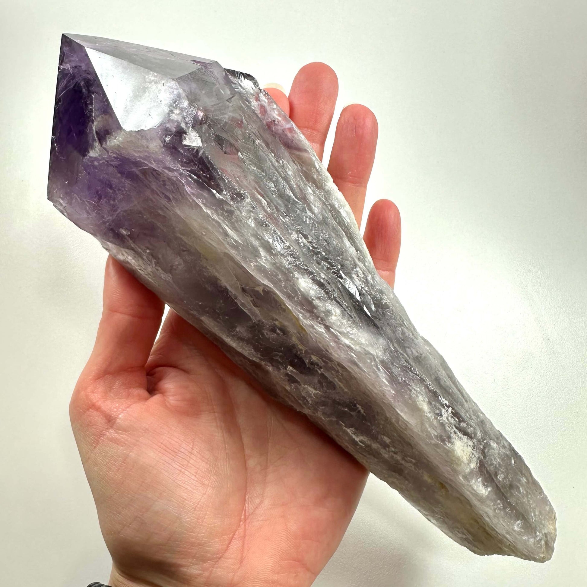 Ametyst dannes naturligt i geoder og huler, hvor den vokser under specifikke temperatur- og trykforhold. Denne process involverer aflejringen af mineraler som jern, der giver ametyst dens karakteristiske violette farve. Scepterformen opstår, når krystallen vokser i lag, som skaber en majestætisk stavlignende struktur. Dette får septeren til at fremstå som et unikt og fascinerende kunstværk af naturen.