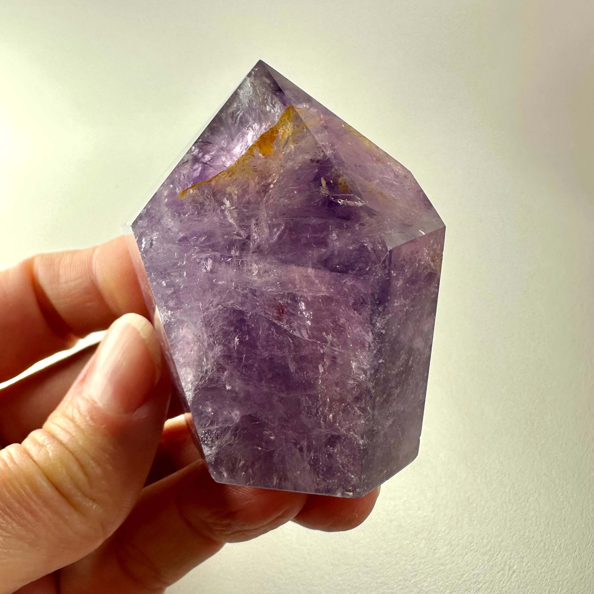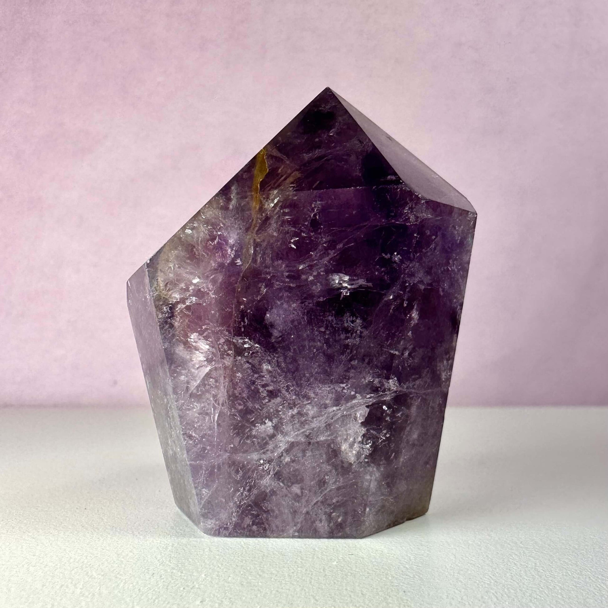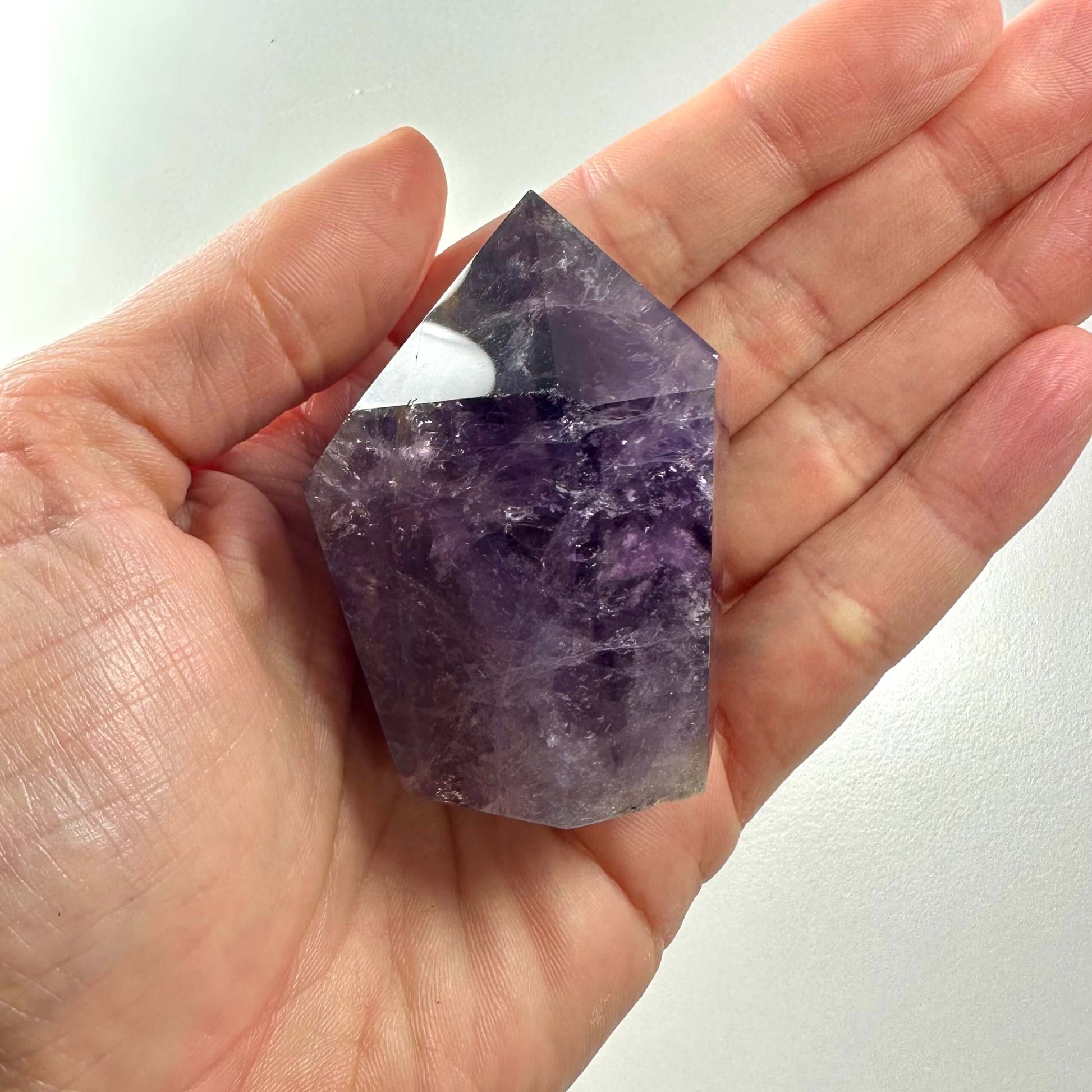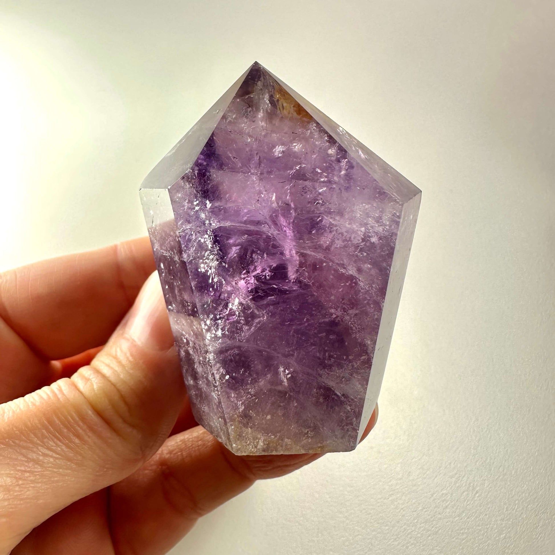 Ametyst spids er en af de mest elskede krystaller inden for krystal healing og spirituel praksis. Med sin dybe lilla nuance symboliserer den ro, balance og åndelig oplysning. Ametyst spids er kendt for sin evne til at åbne sindet og forbedre meditation. Den beroliger overbelastet energi, lindrer stress og hjælper med at beskytte mod negativitet, hvilket gør den til en ideel krystal for dem, der søger at fordybe sig i meditation og åndelig praksis.
