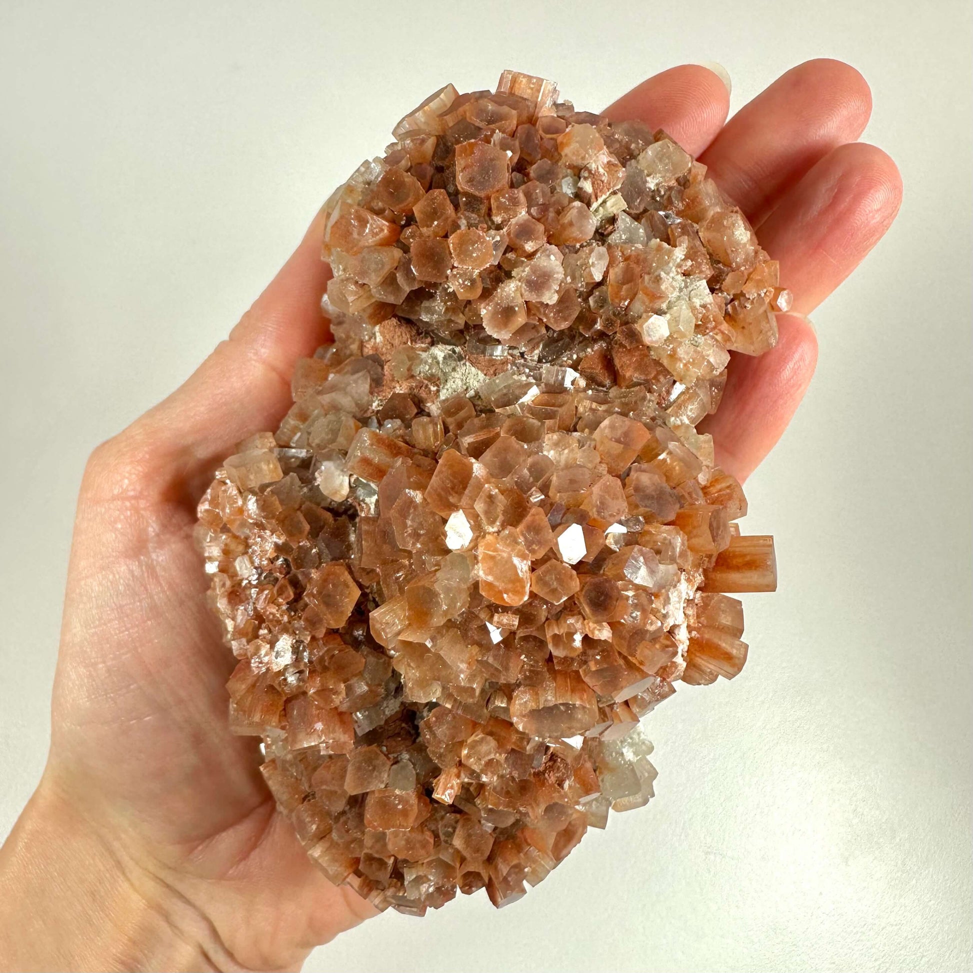 Opdag aragonit klyngens unikke former og naturlige farvespil, der skaber ro og balance.