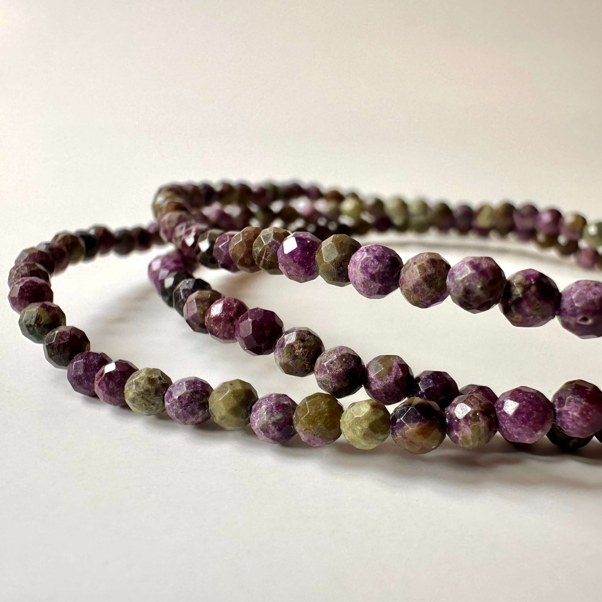 Atlantissten armbånd også kaldet Atlantisit, er kendt for sine smukke grønne og lilla nuancer, som opstår i samspillet mellem mineralerne serpentin og stichtit. Stenen forbindes ofte med indre ro, medfølelse og spirituel udvikling. Atlantisit siges at have en beroligende energi, der kan hjælpe med at frigive gamle følelser, reducere stress og skabe større følelsesmæssig balance.