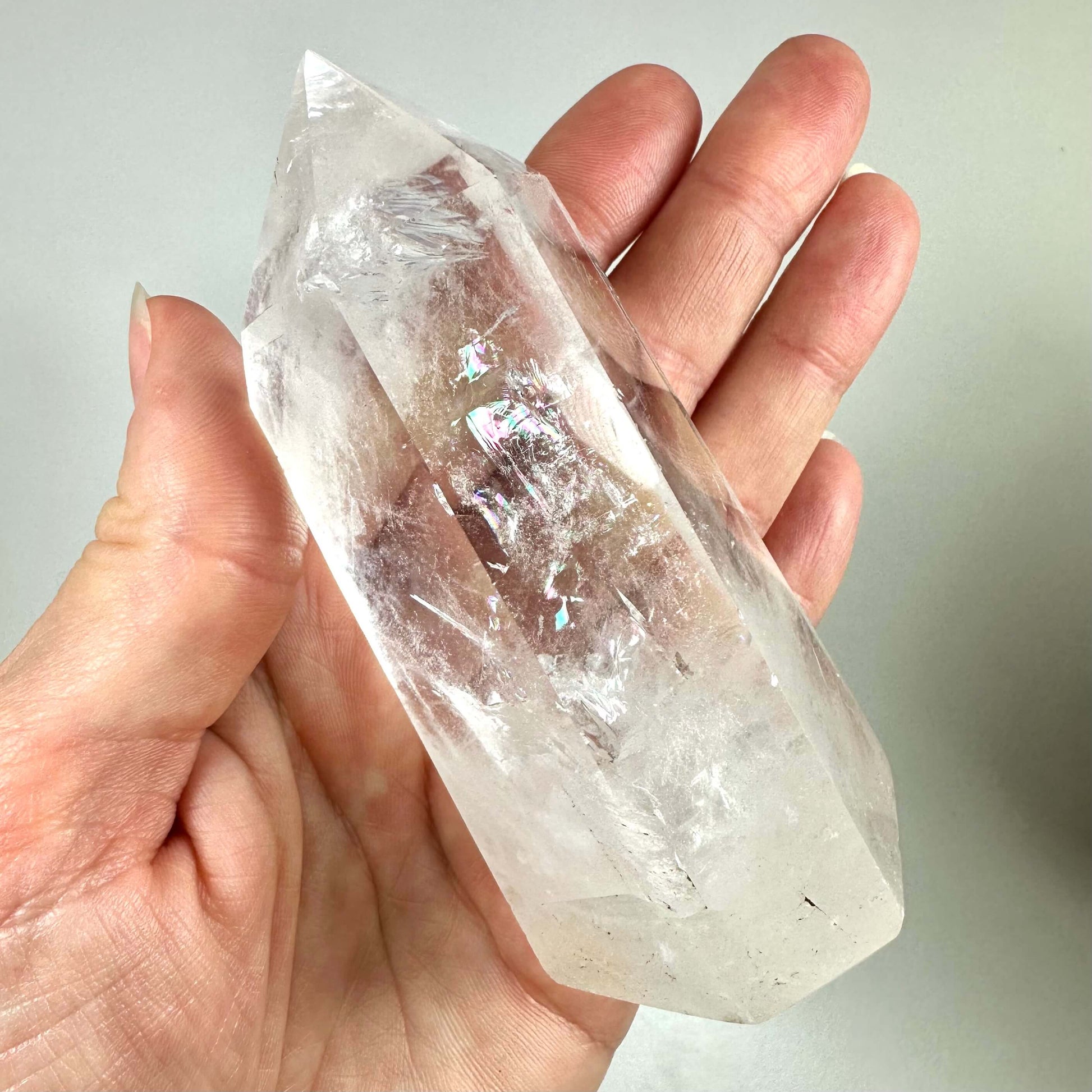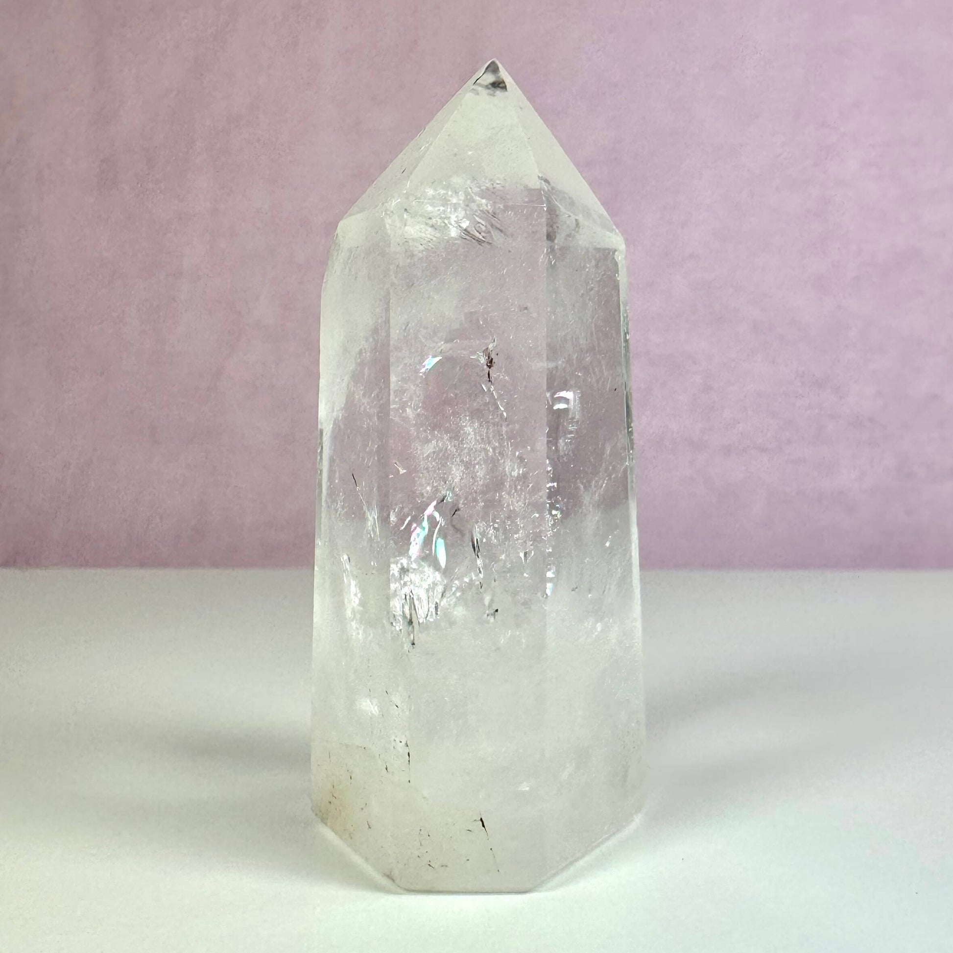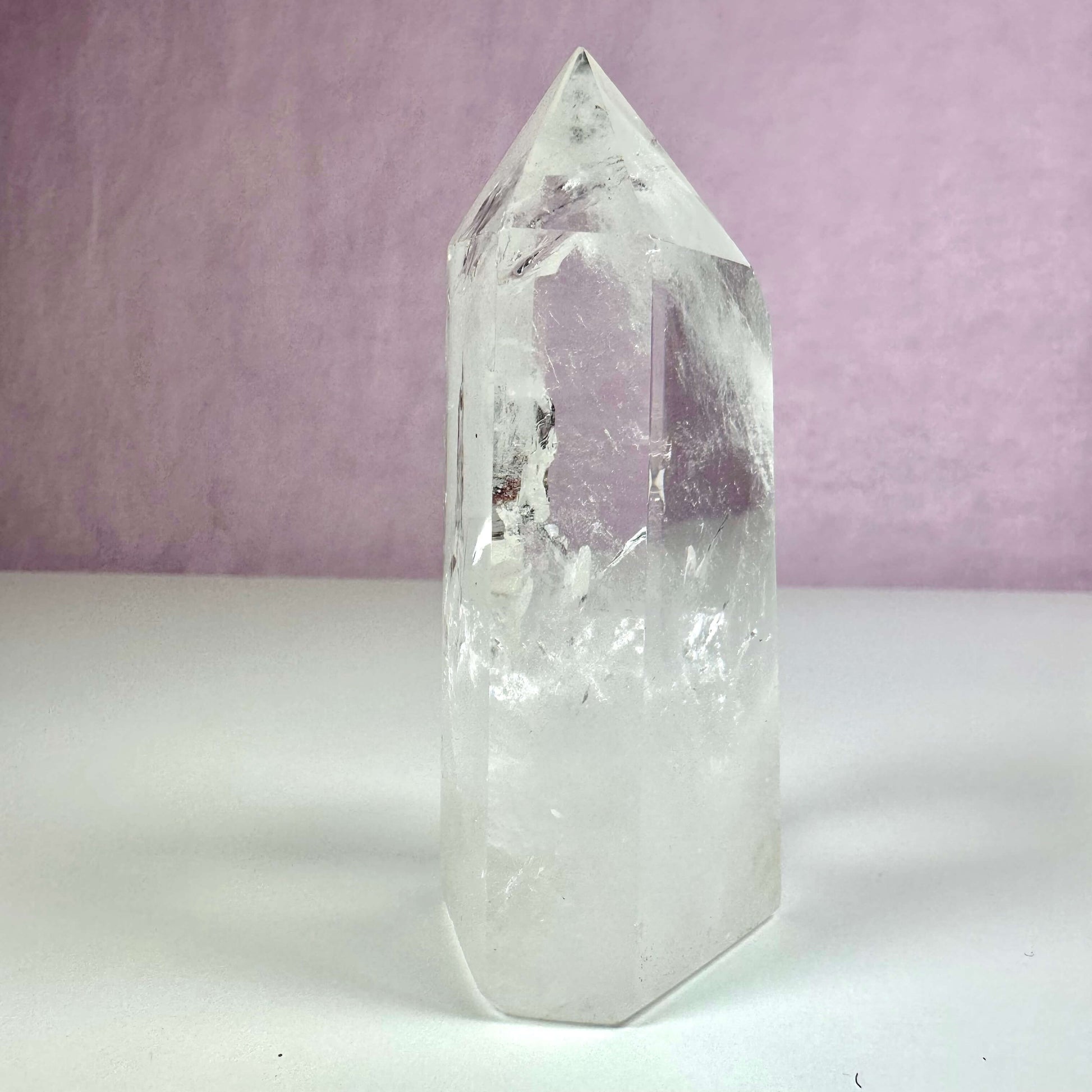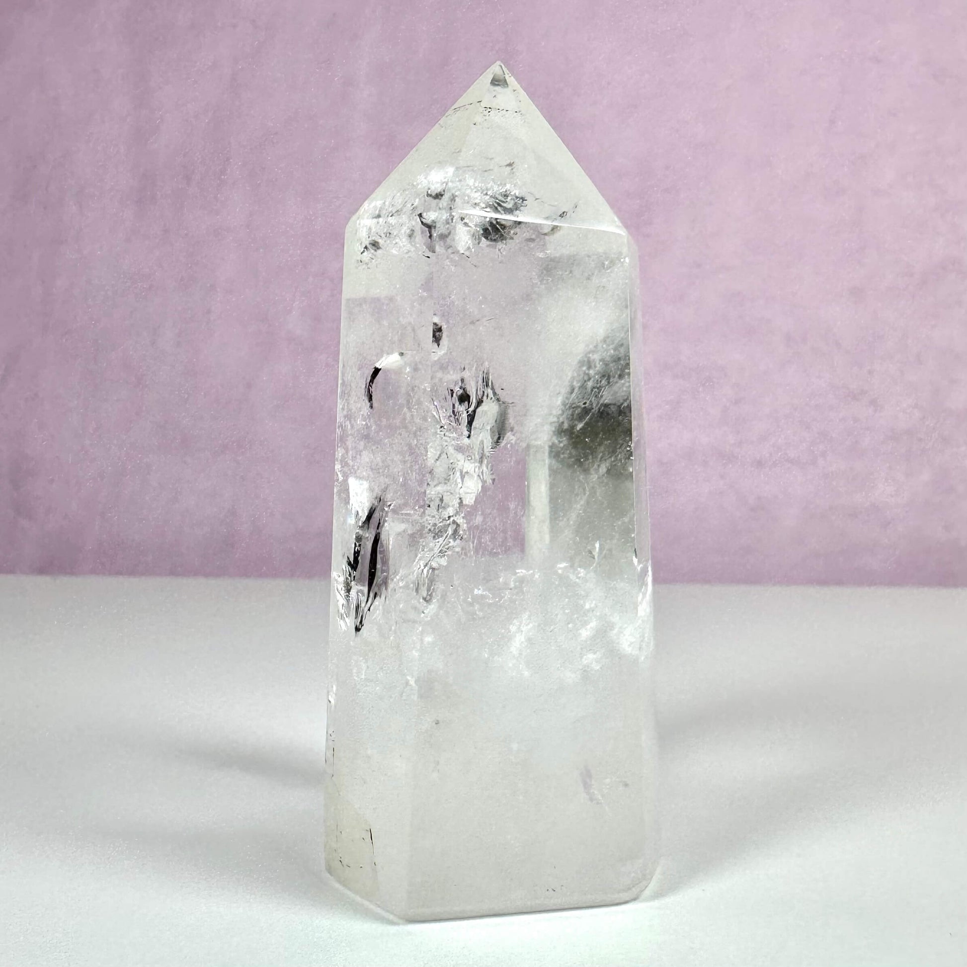 Bjergkrystal tårnet er en elegant klar kvarts, der tilfører ro og skarphed til din indretning og meditation.