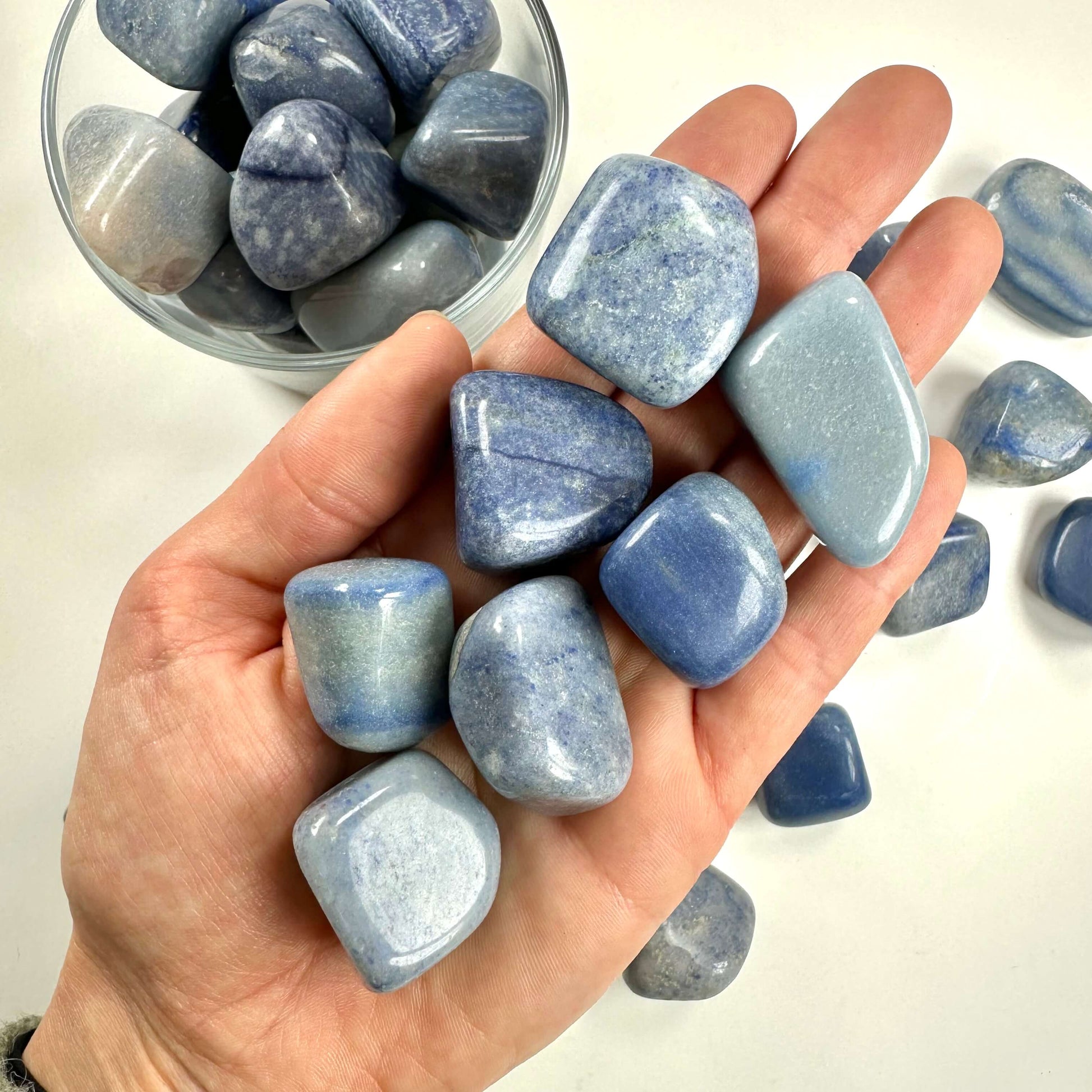 Blå kvarts udsender en blid og beroligende energi, der hjælper med at skabe ro i sindet og klarhed i tanker og kommunikation. Den styrker tålmodighed, tillid og indre balance – en ideel sten til at bære i lommen i perioder med stress eller fordybelse.
