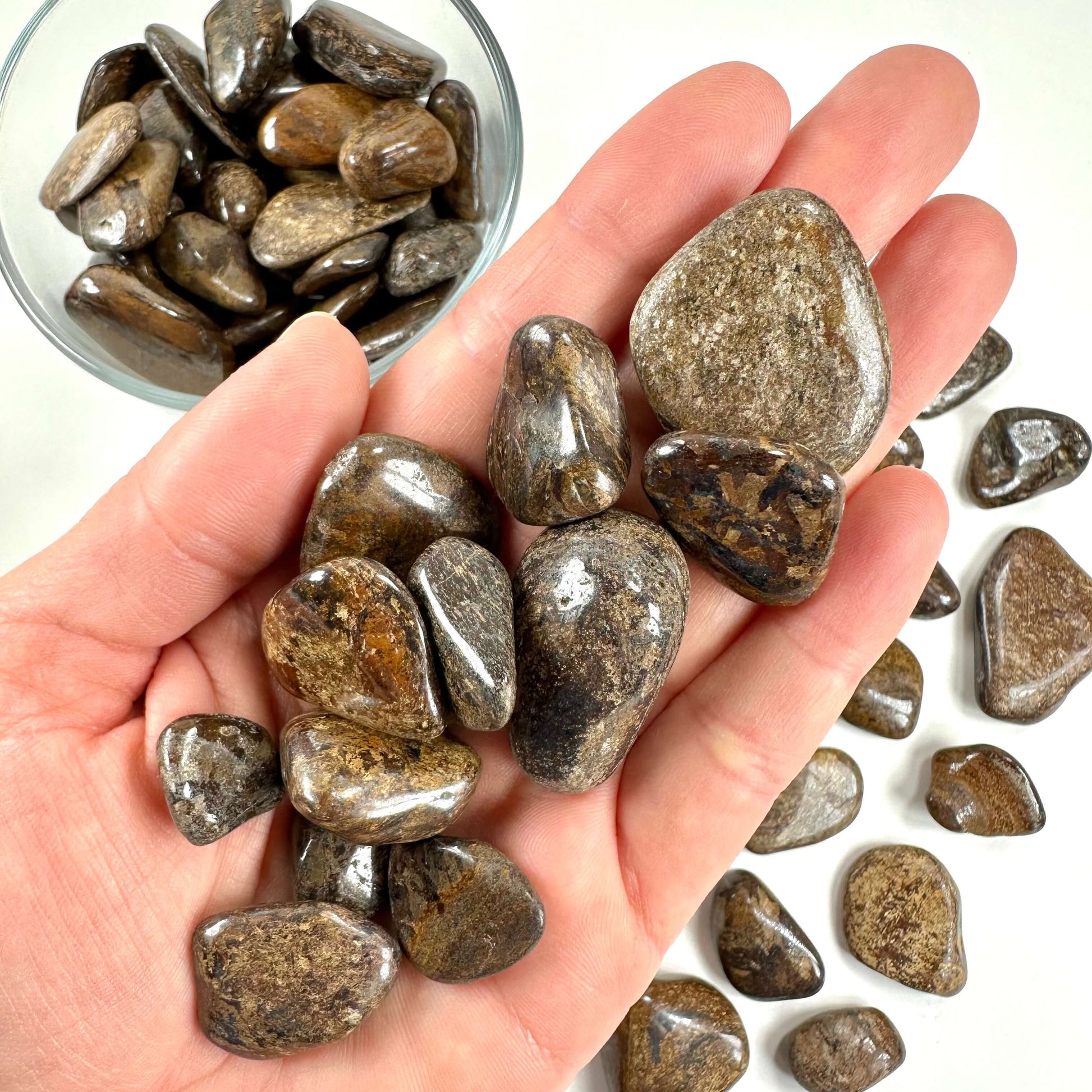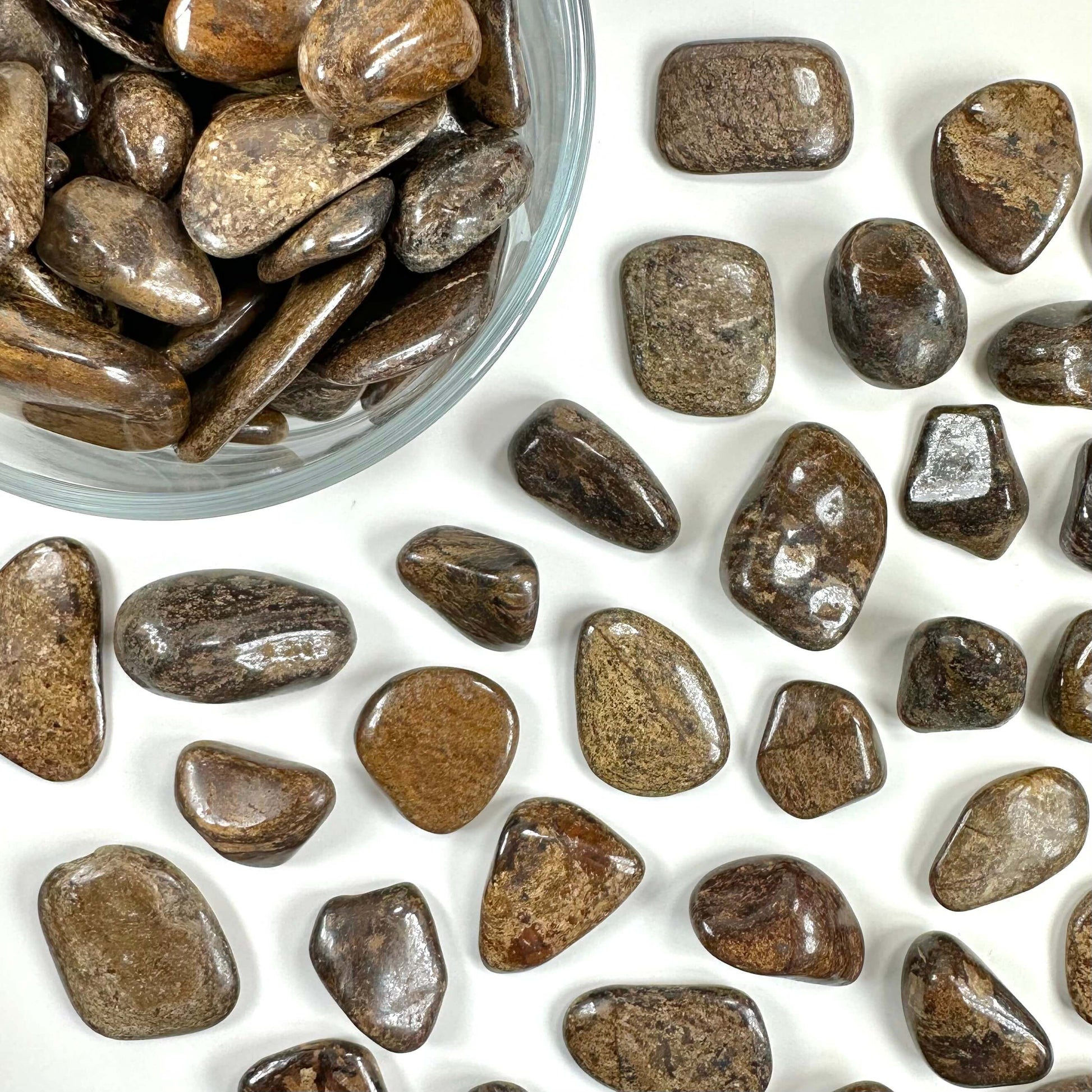 Bronsit giver jordforbindelse, ro og handlekraft. Den dæmper uro, styrker selvtillid og hjælper dig med at træffe klare beslutninger – især i pressede situationer. En solid hverdagsmakker i lommen eller hånden.