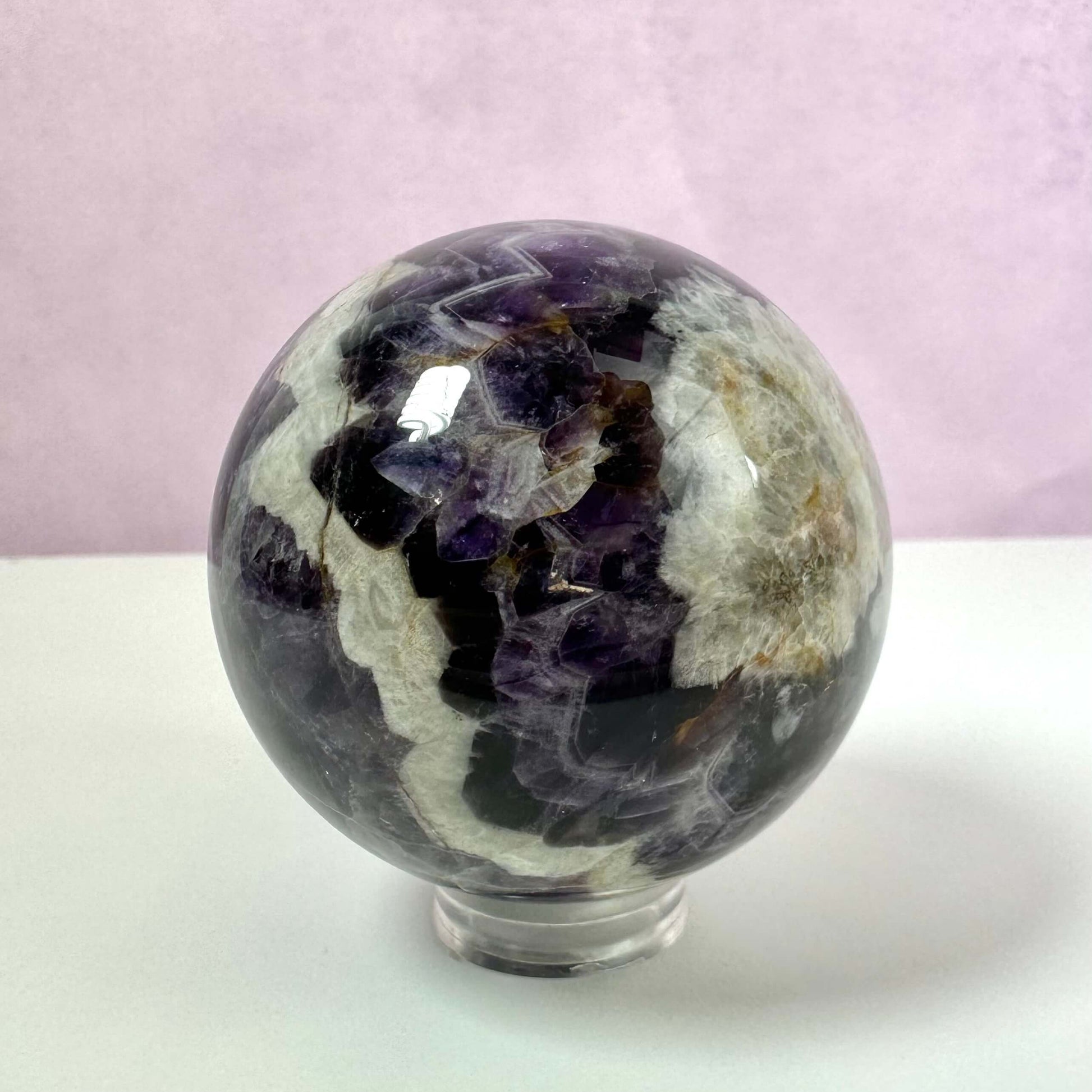 Chevron ametyst kugle – betydning og unikke egenskaber