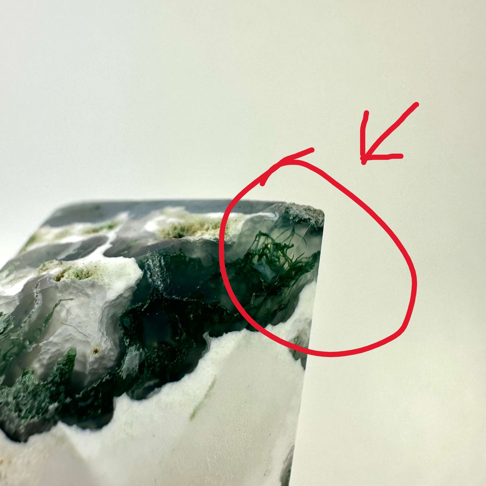 Primært forbundet med hjerte-chakraet virker mos agat for at åbne og balancere dette center for kærlighed og medfølelse. Dets indflydelse kan også mærkes på rod-chakraet, hvilket giver en solid og jordende energi.