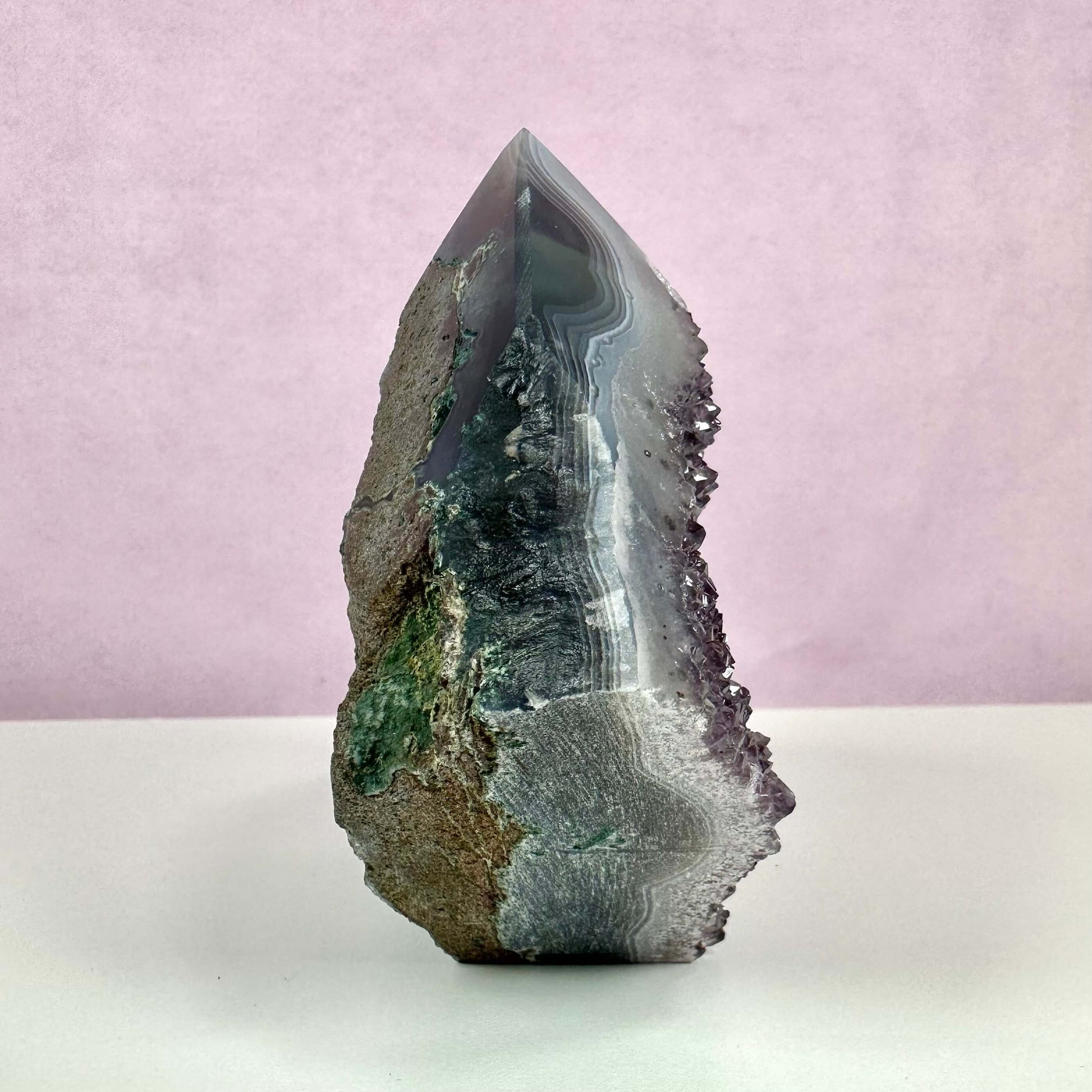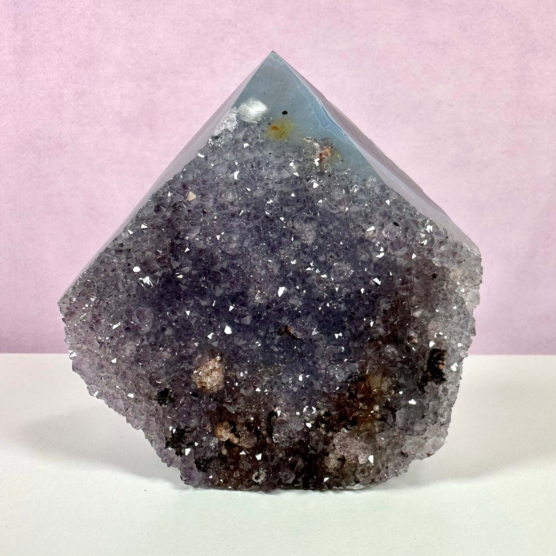 Unik charme og kraftfuld energi med drusy ametyst spids