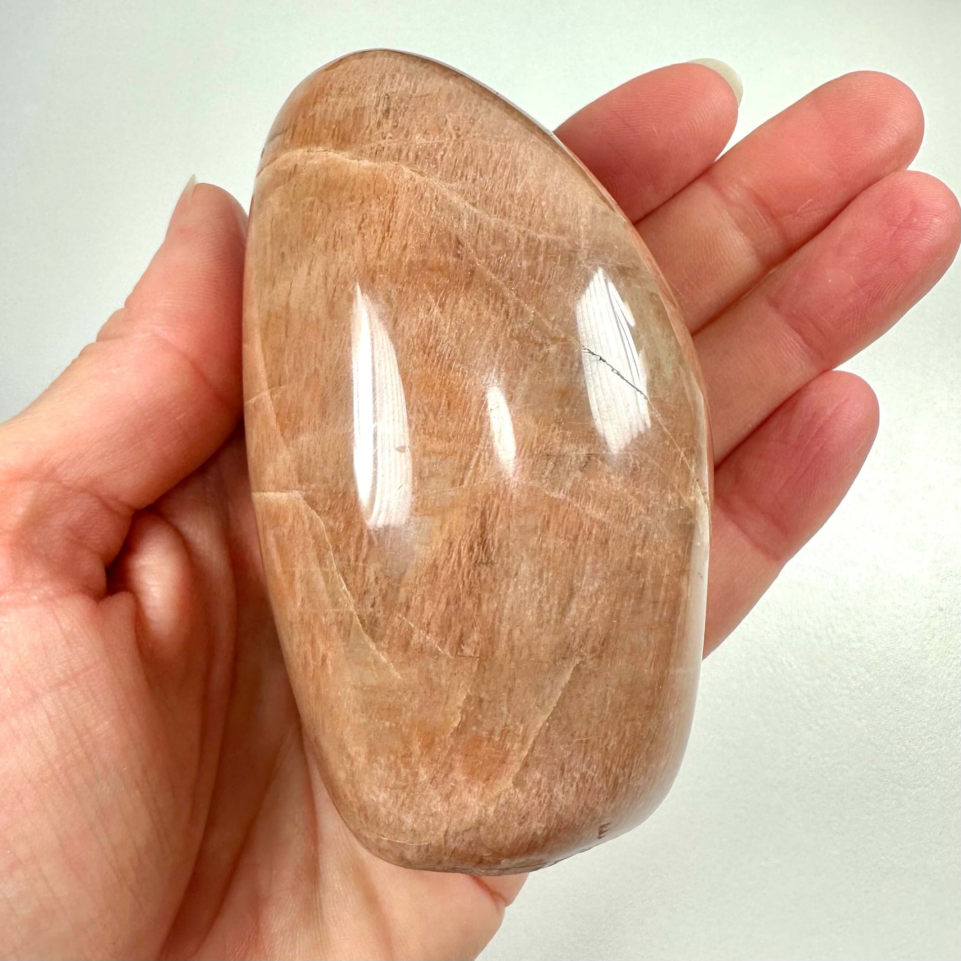 Fersken månesten freeform har en blød ferskenfarvet glød og skaber ro til meditation og indre balance.