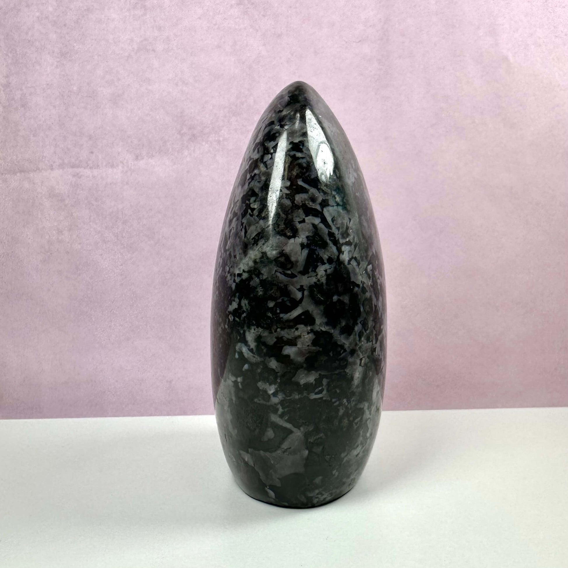 Denne krystal er godt forbundet med rodchakraet og det tredje øje. Den sorte farve tilskynder jordforbindelse, mens de indigo nuancer bringer en dybere forbindelse til intuition og spirituel oplysning.