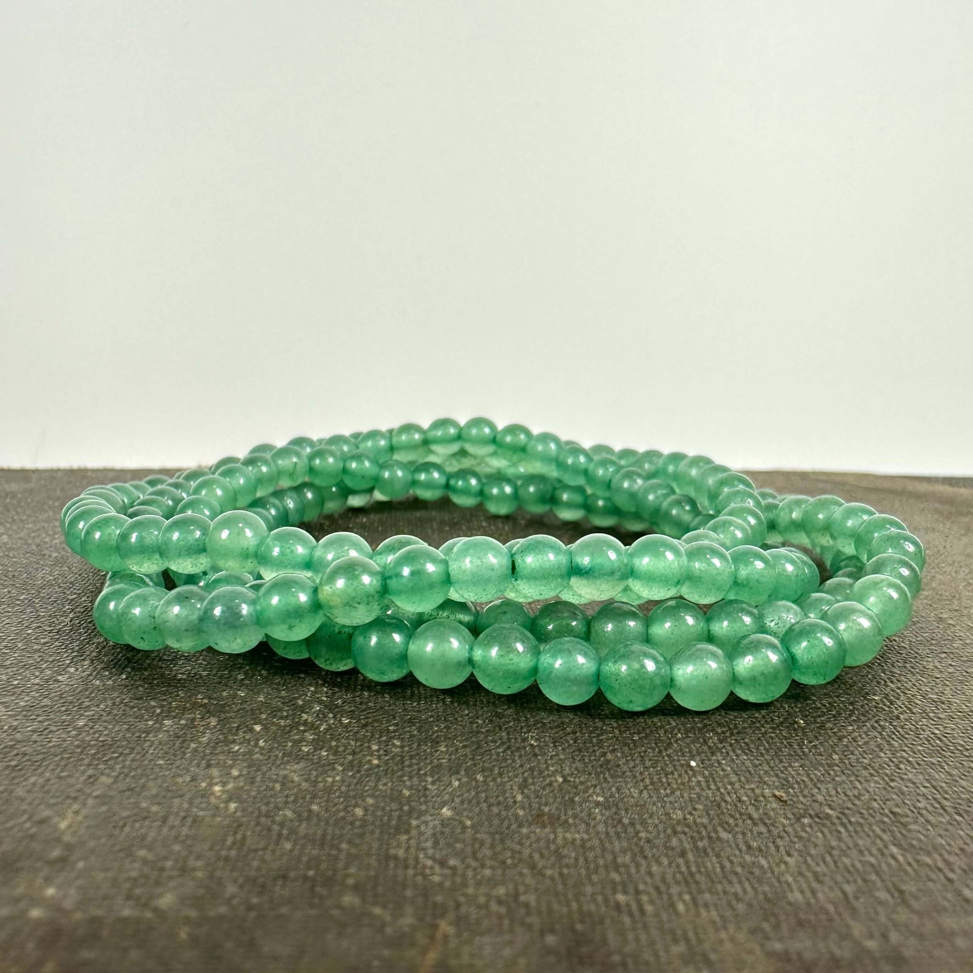 Dette armbånd er håndlavet med 10 mm grøn aventurinperler, der udstråler en frodig grøn glød. Perlerne er slebet til en glat, rund form, hvilket symboliserer helhed og enhed. Armbåndet er elastisk og passer til de fleste håndled, hvilket gør det både smukt og behageligt at bære.