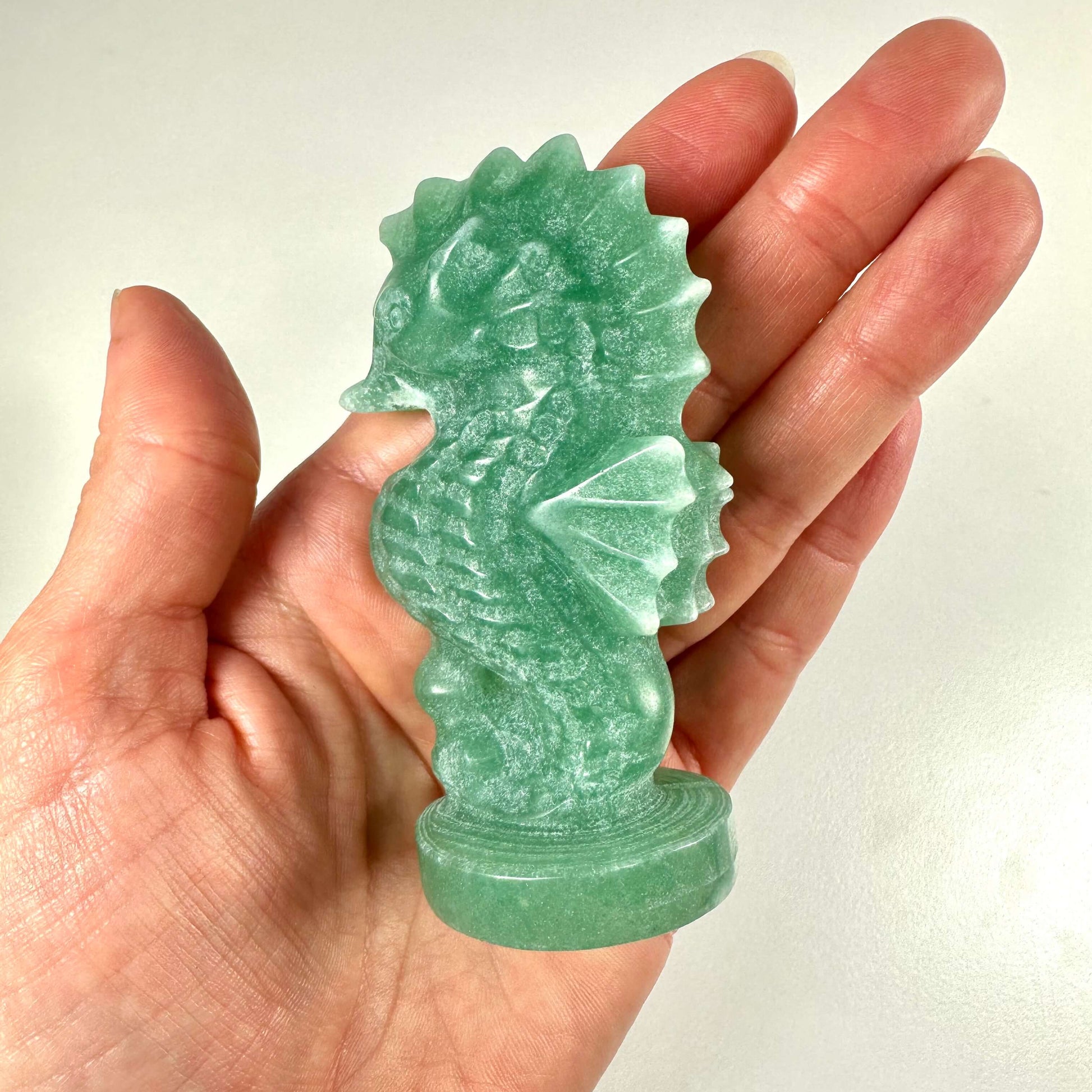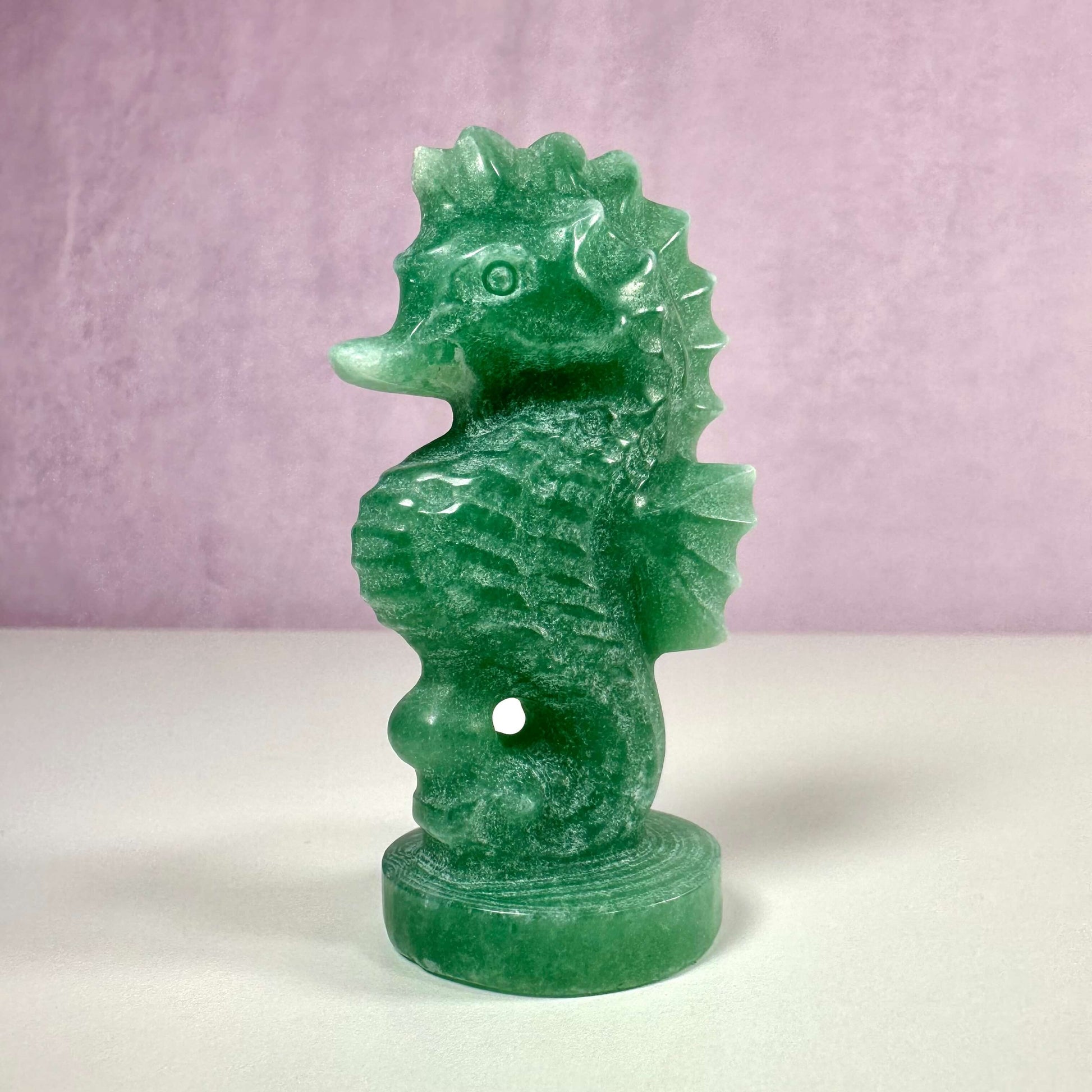 Den grønne aventurin søhest er en elegant dekoration til dit hjem, der tilføjer både stil og indre ro.