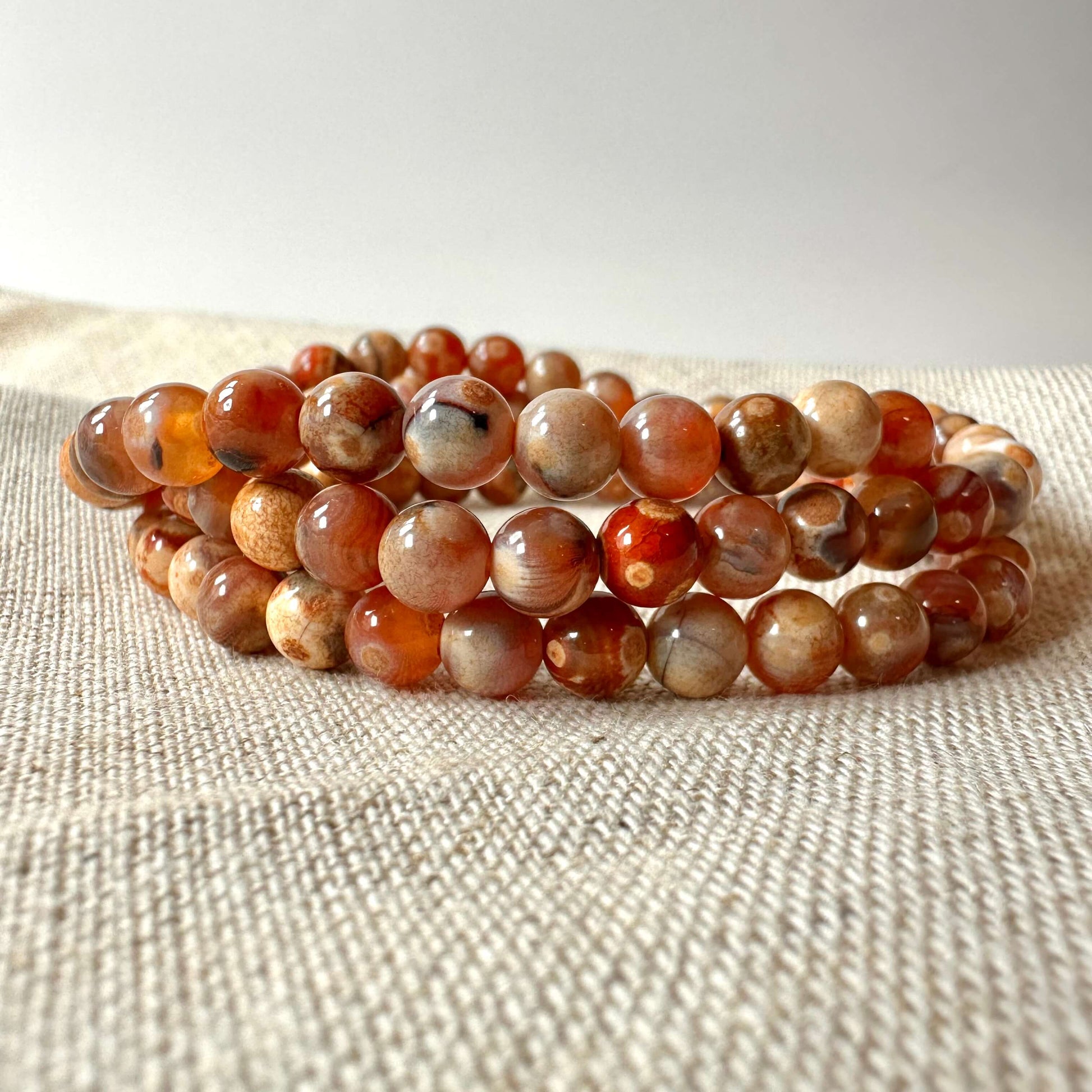 Ild agat armbånd kan bæres til daglig brug for at gøre brug af dets energiske egenskaber. Det kan også bruges i meditation, hvor det holder fokus og fordyber praksissen. Læs mere om meditation i vores guide til meditation.