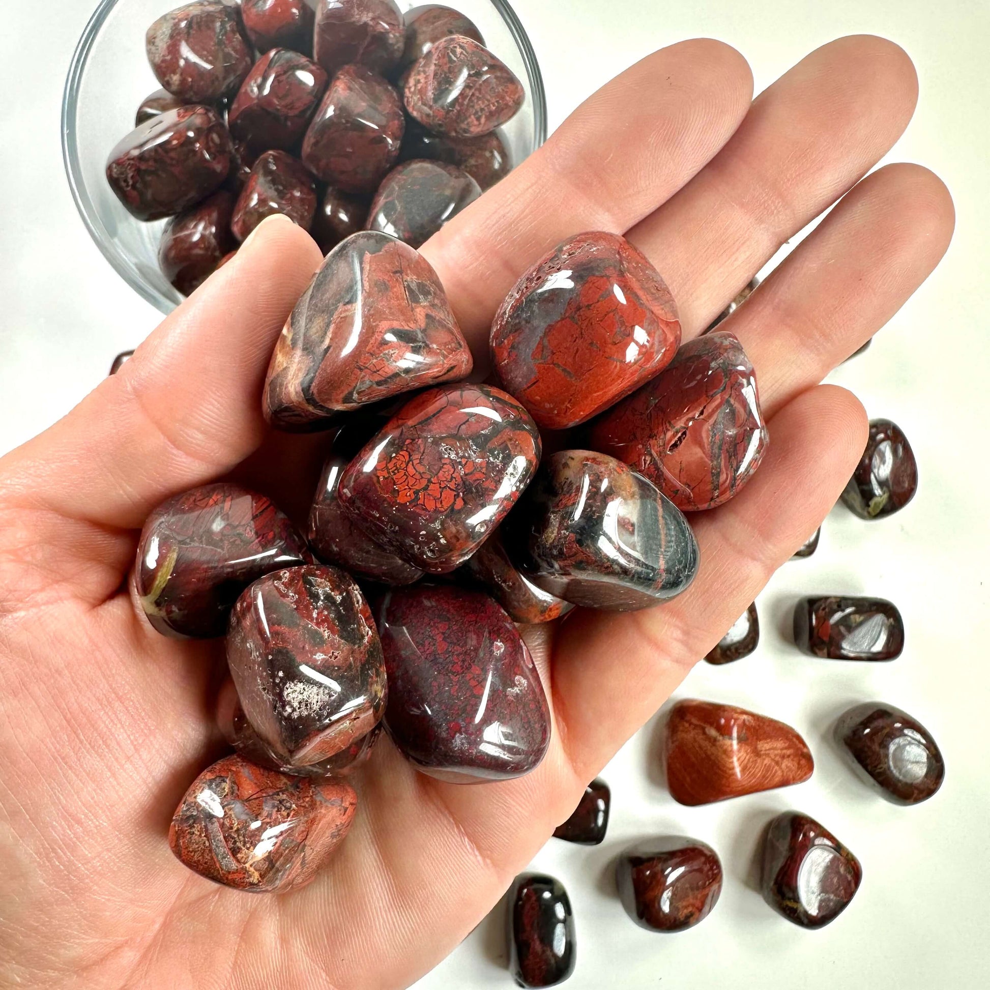 Jaspis breccie varierer afhængigt af oprindelse, med farveintensitet og mønsterforskelle i sten fra Brasilien, Indien og USA. Hver region tilfører unikke træk til denne smukke sten.
