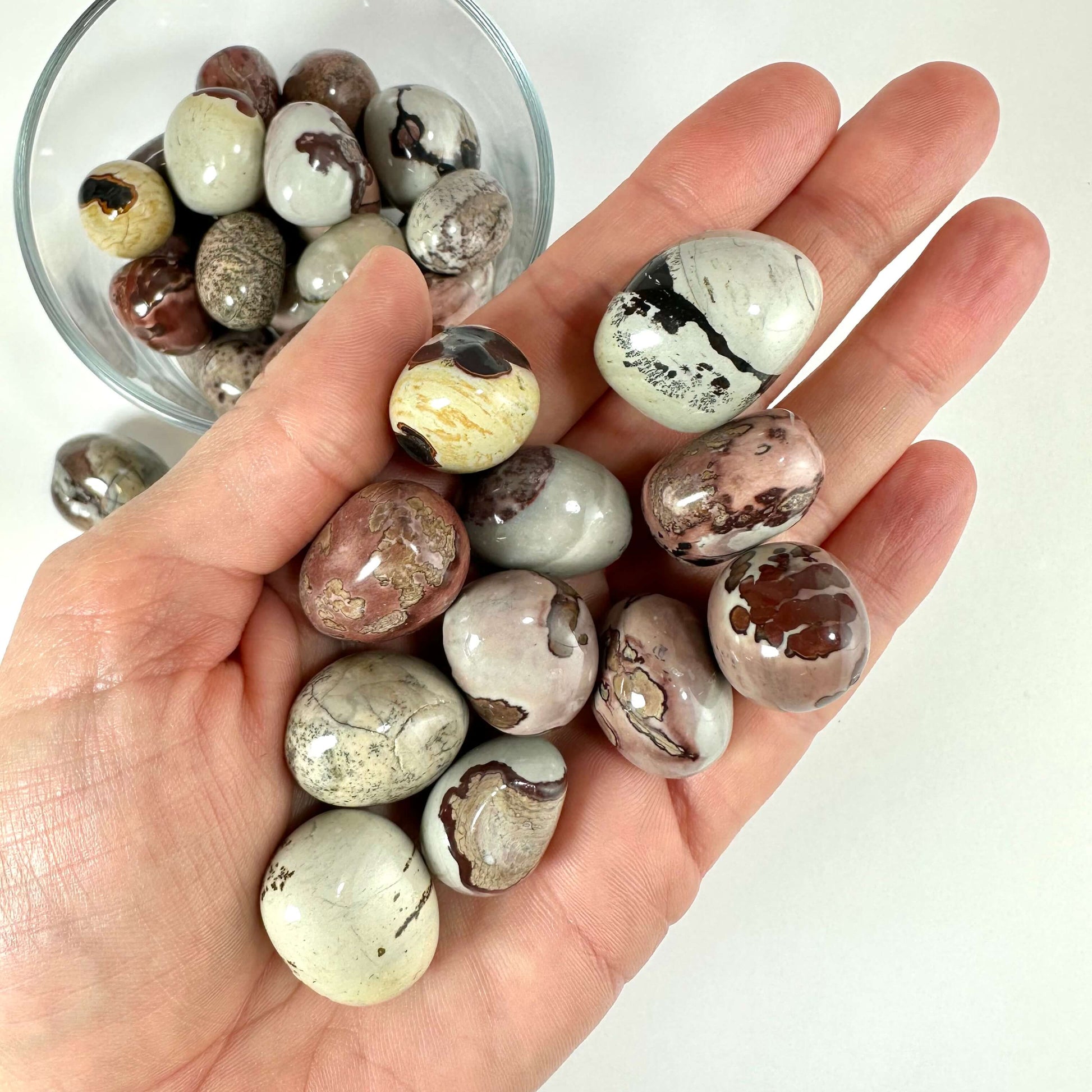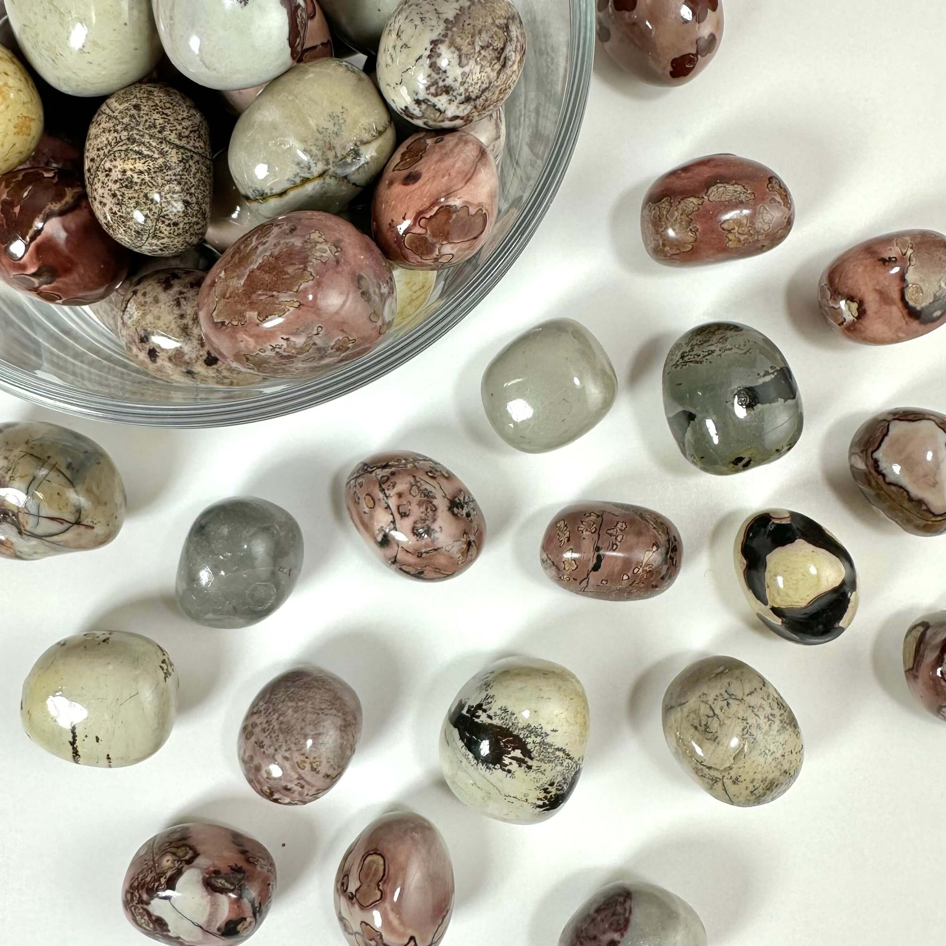 Jaspis vandfald bringer ro, jordforbindelse og indre balance. De bløde mønstre minder om rindende vand og hjælper med at slippe spændinger og lade energien flyde frit. En beroligende sten, der støtter nærvær, tålmodighed og stabilitet – perfekt som lommesten i hverdagen.