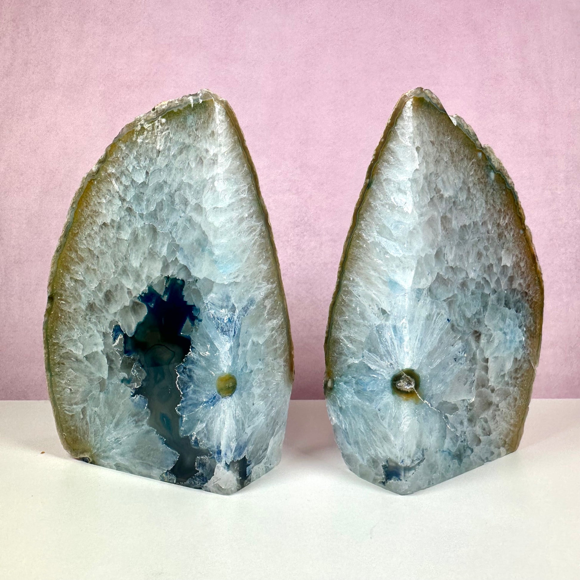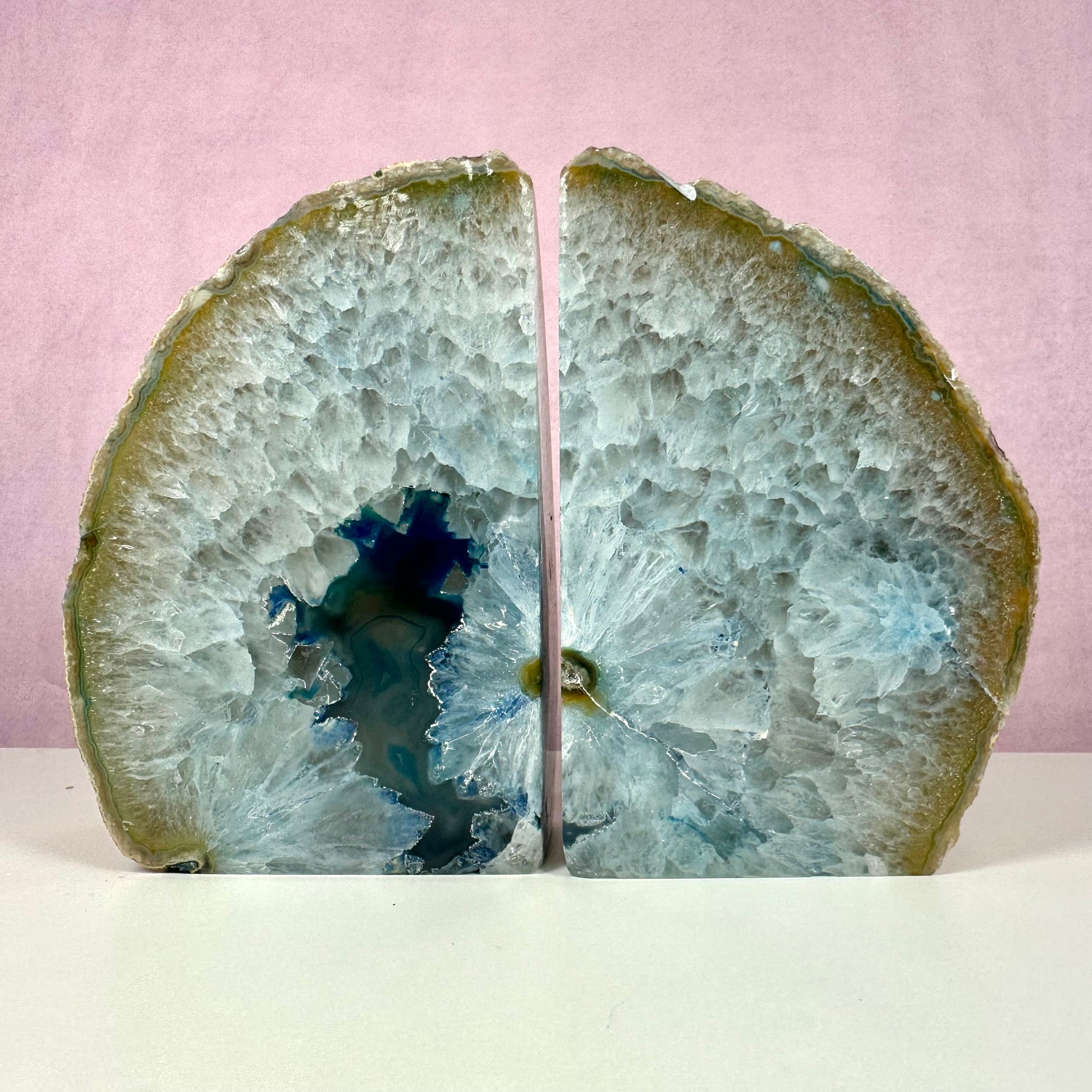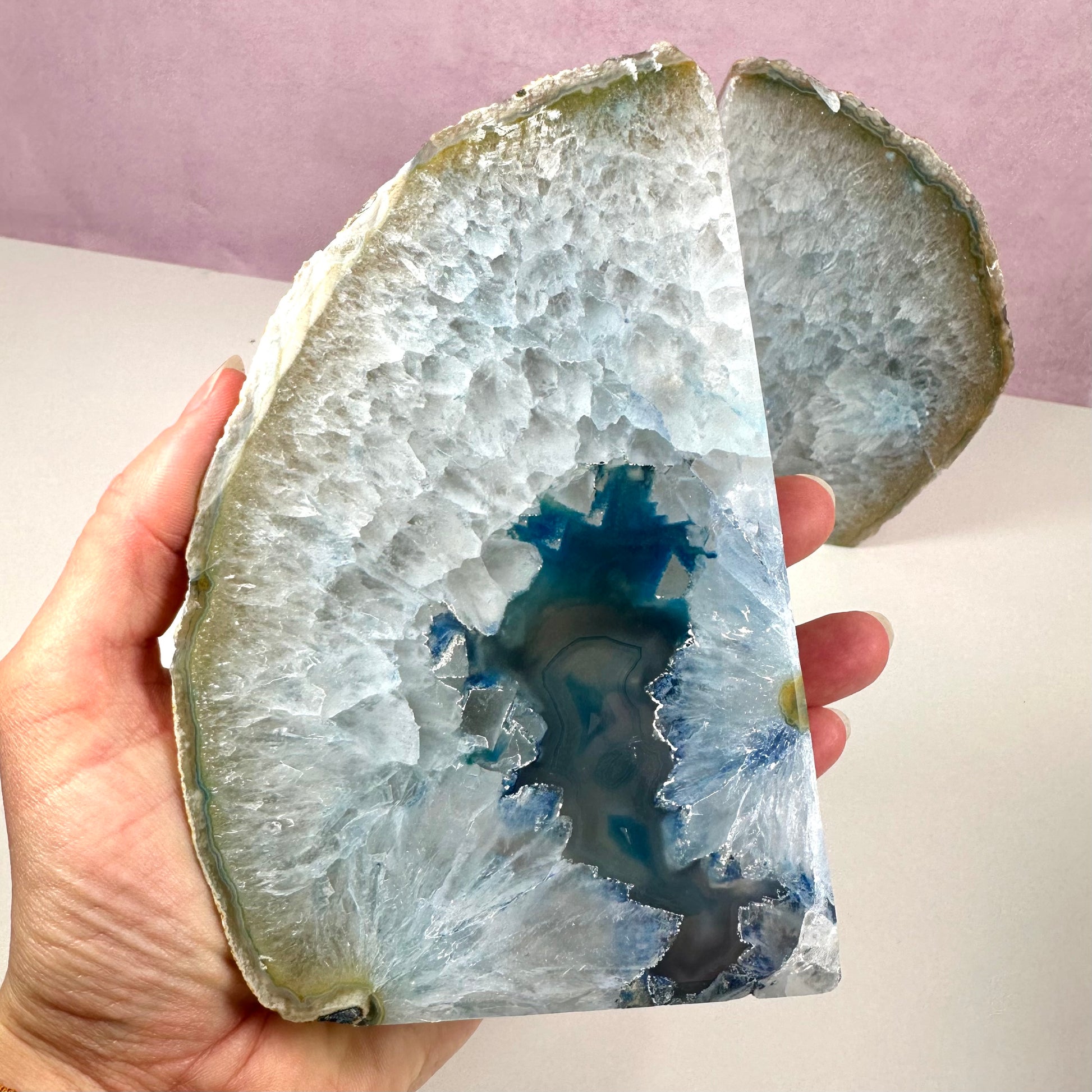 Oplev magien ved vores kvarts bogstøtte i blå, en unik fusion af kunst og funktionalitet, perfekt til at berige din boligindretning.