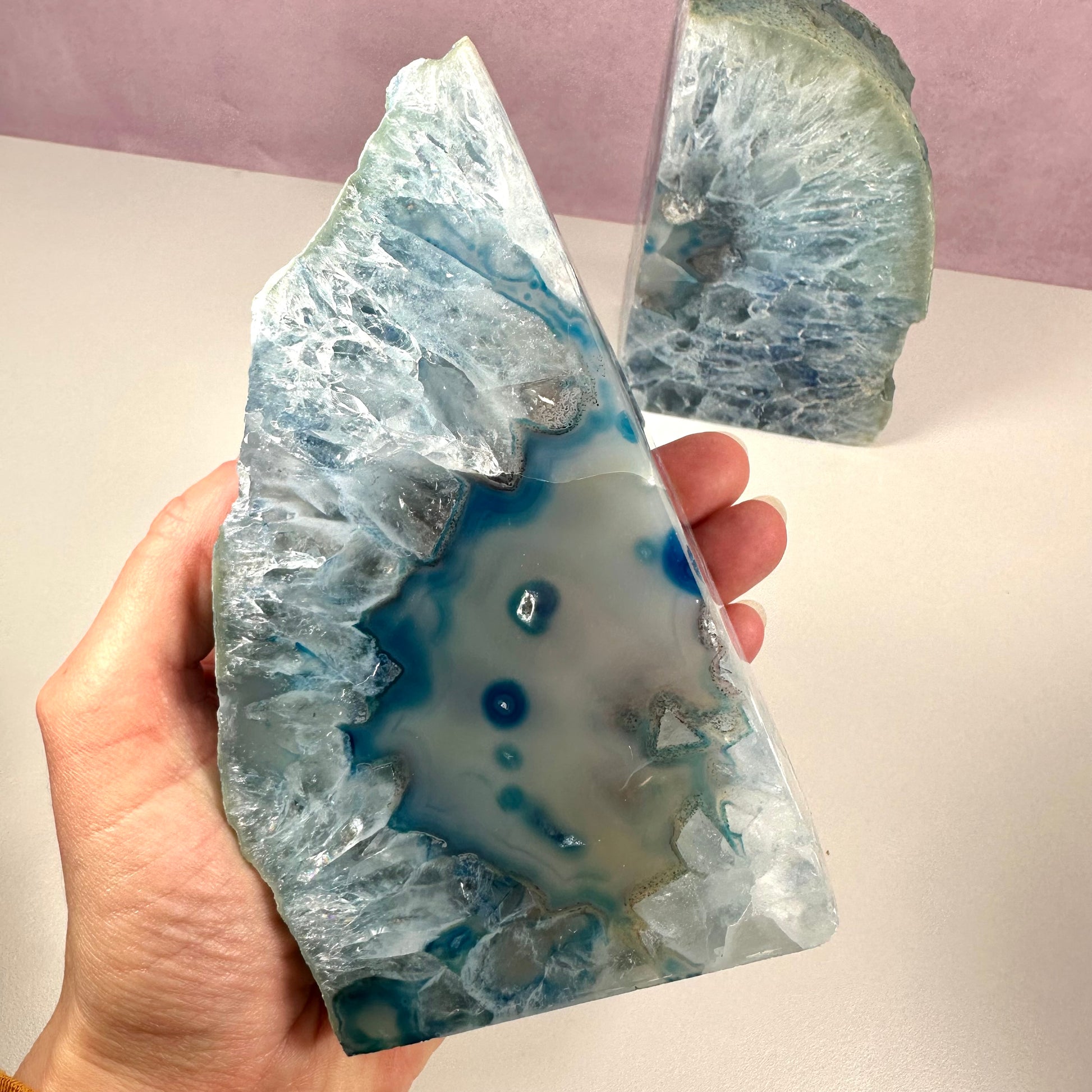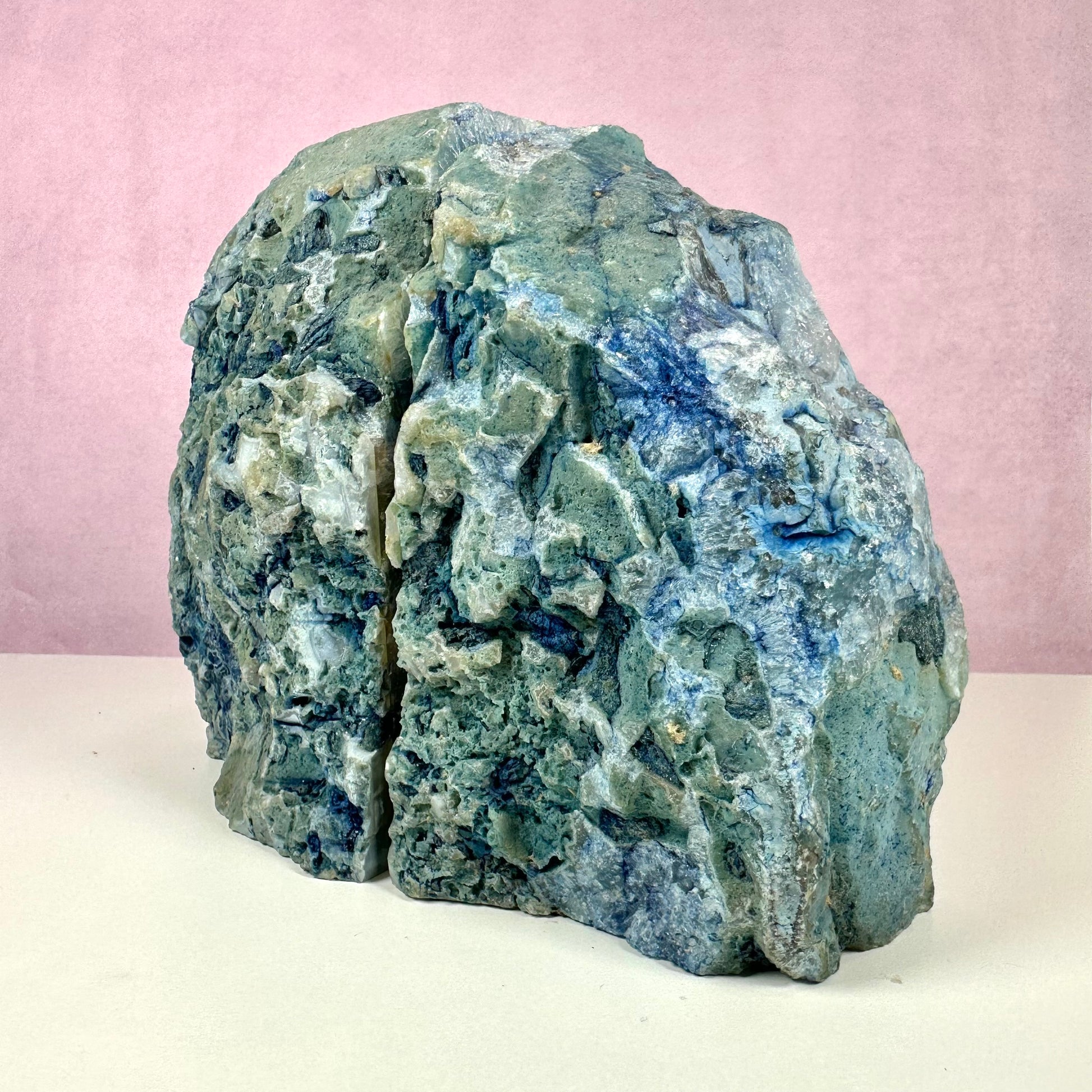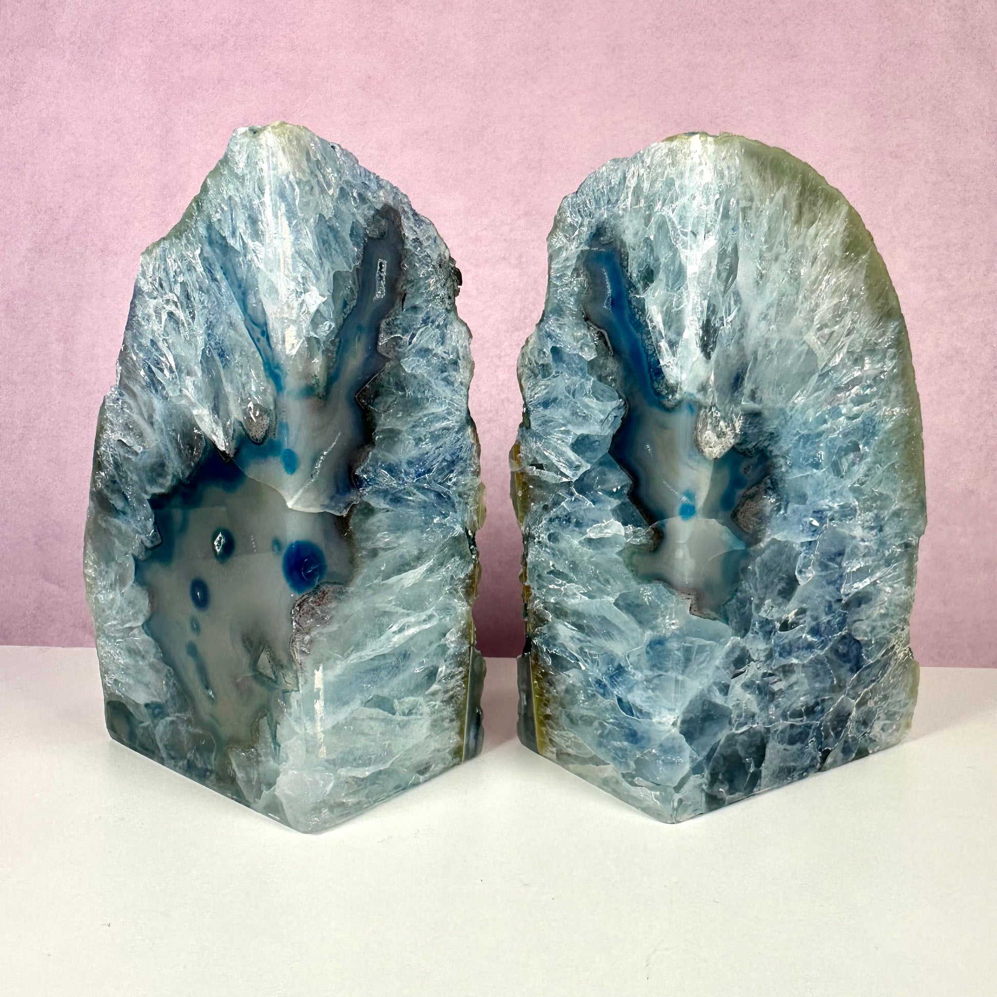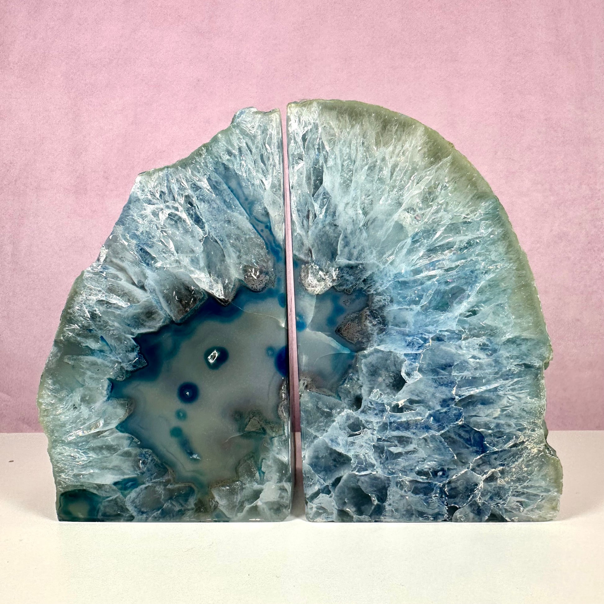 Blå kvarts bogstøtte kombinerer praktisk funktion med et æstetisk, skulpturelt udtryk og tilfører ro og elegance til din indretning.