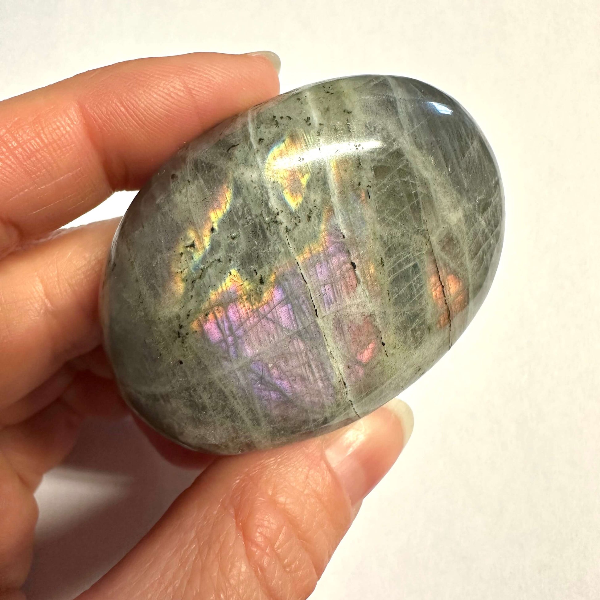 Labradorit sunset palmstone nr 1 er en smuk palmstone med smukke farver, der skaber ro og balance.