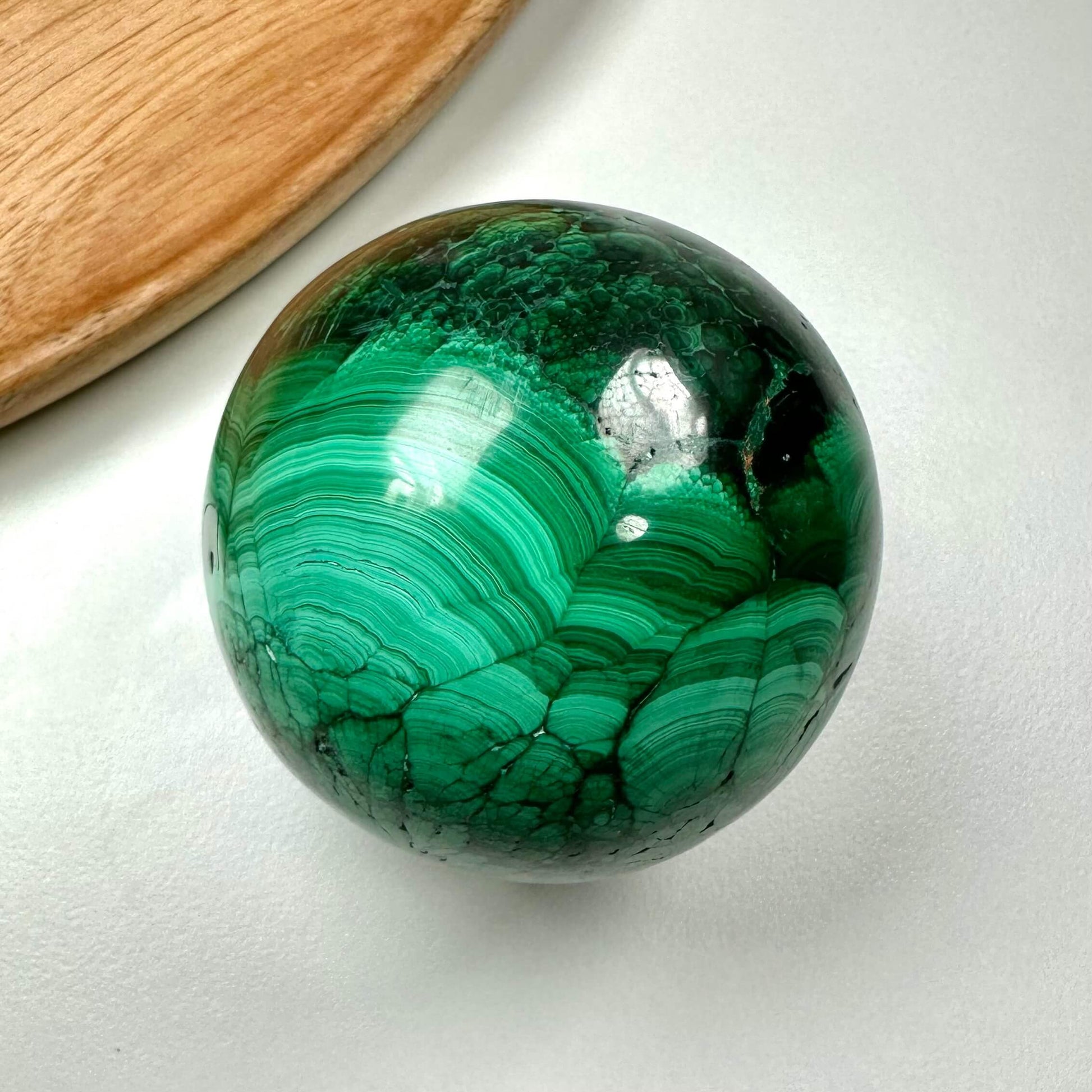 Mens malakit oftest genkendes på sine livlige grønne og sorte bånd, kan variationer i intensitet og mønster forekomme baseret på krystallens kobberindhold og dannelsesproces. Mange samler på malakit kugler på grund af deres visuelle appel og symbolik.Anvendelsesmuligheder for malakit kugle