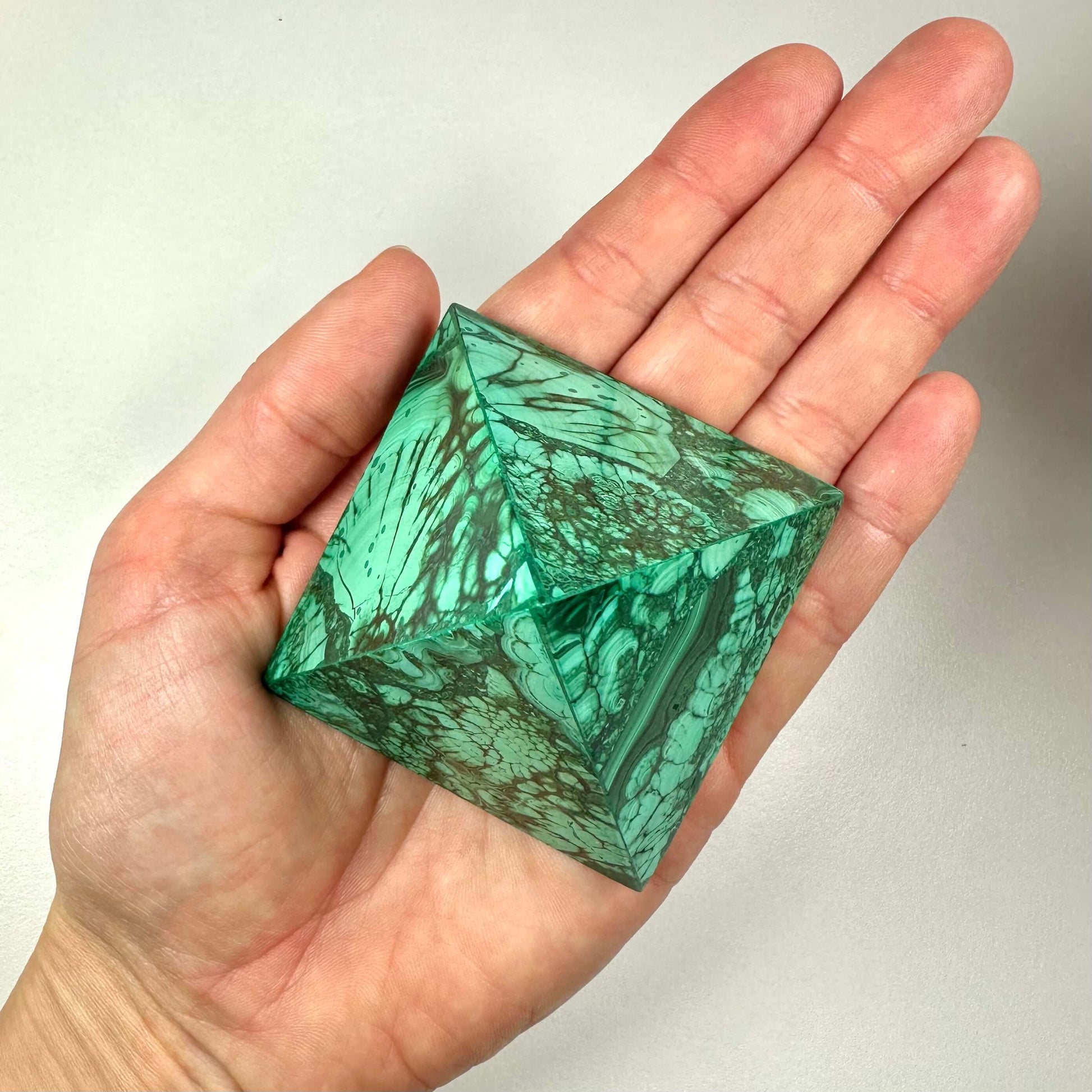 Der findes mange forskellige størrelser og former af malakit pyramider. Nogle er glatte og polerede, mens andre bevarer en mere rå og naturlig overflade. Uanset deres udseende, bærer alle varianter malakittens iboende energiske kvaliteter. Malakit fra Congo er især populært for sin intense grønne farve og tydelige bånd.
