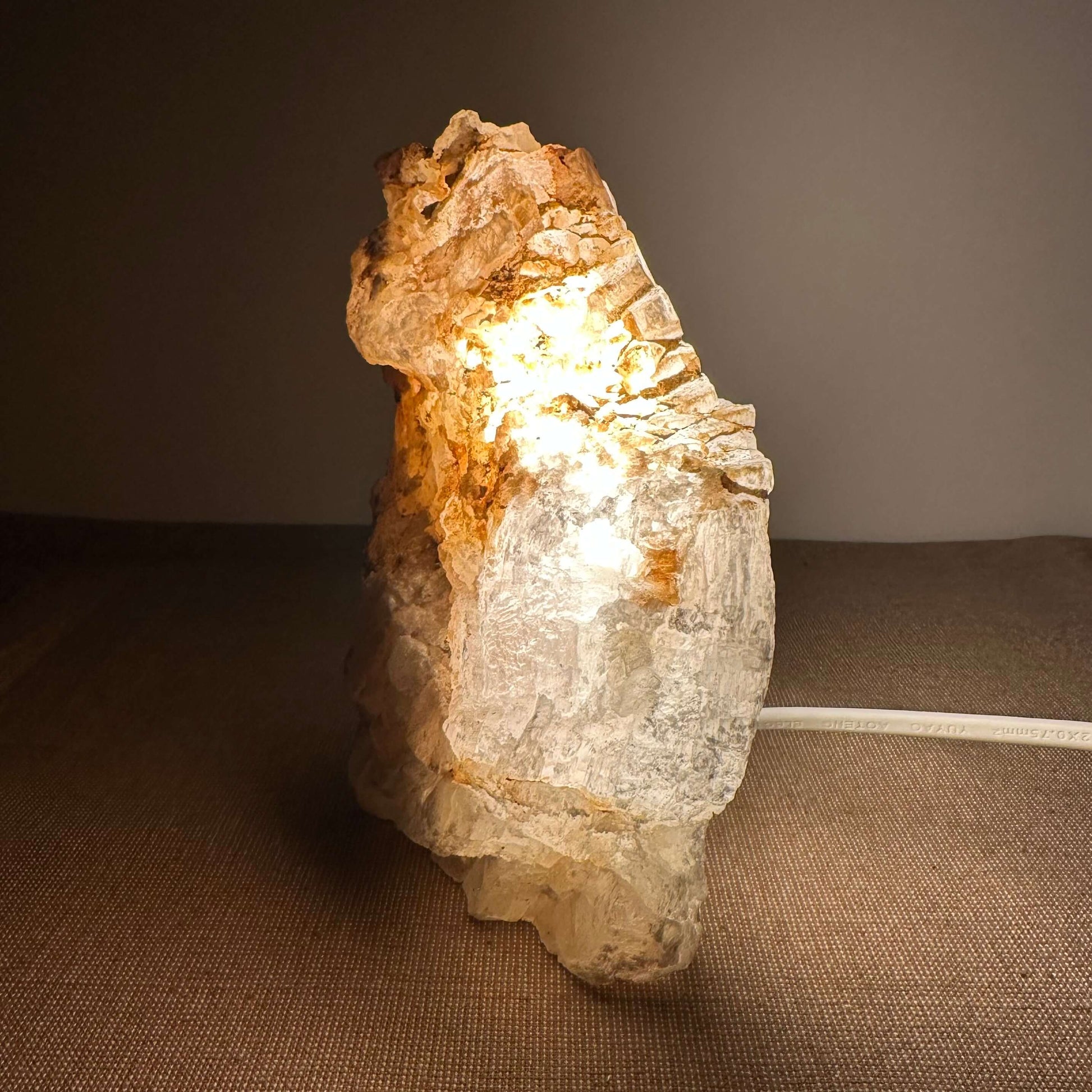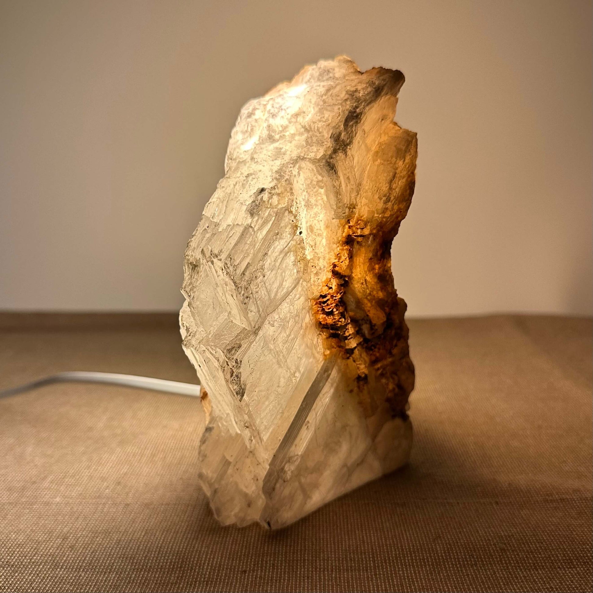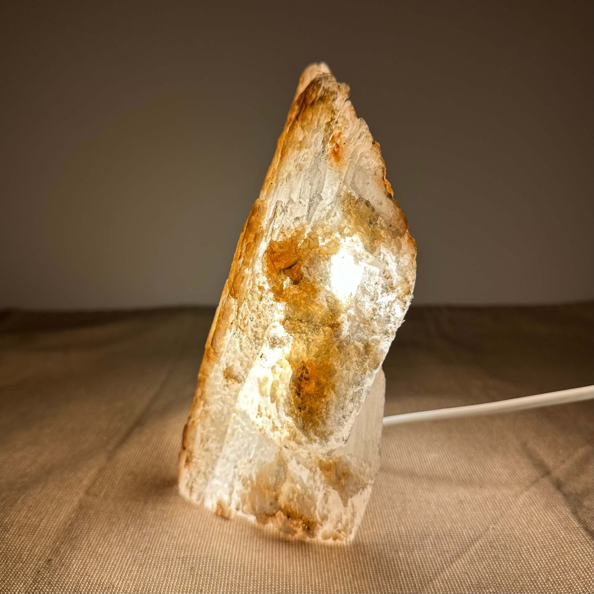 FÉ Luminous præsenterer en unik kollektion af håndskårne lamper fremstillet af sjældne selenitkrystaller fra Mexico. Lamperne kombinerer naturlig skønhed med elegant belysning, der skaber en beroligende og stemningsfuld atmosfære i ethvert rum. Med en neutral farvepalet og et organisk design, passer de tidløse lamper perfekt ind i alle typer interiør, og tilføjer både stil og ro. Hver bordlampe er udstyret med en roterende dæmpningskontakt, som giver mulighed for at justere lysintensiteten og skabe den ønskede stemning. LED-pæren er energieffektiv og dæmpbar (3W - 300 lumen), og hele lampens opbygning er i overensstemmelse med de gældende tekniske standarder for design, produktion og funktionalitet. FÈ Luminous er inspireret af naturens organiske former og skaber unikke, ikke-gentagelige stykker med karakter, der bringer naturen ind i dit hjem. Maria glas - også kendt som mariaglas eller marienglas selenit - er et mineral af calcium sulfat, der er dannet i Mexico gennem millioner af år i klare, delikate lagdelte krystaller.