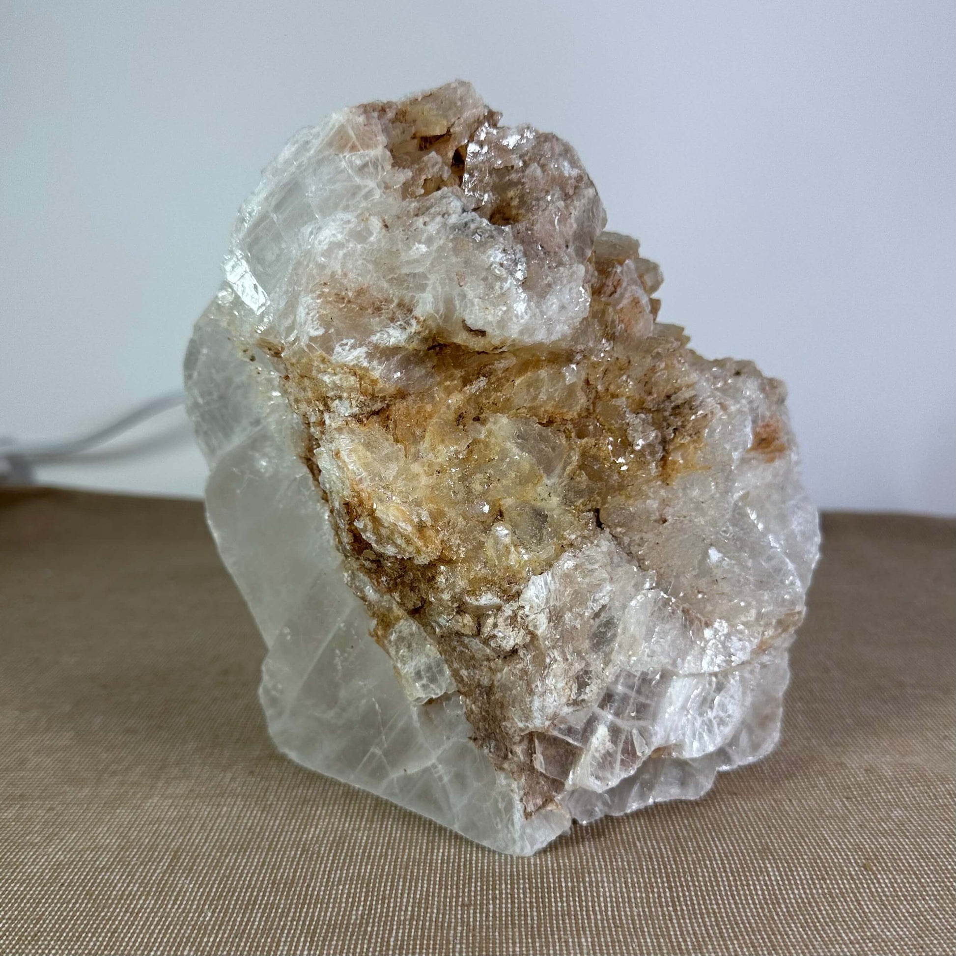 FÉ-lampen, er lavet af (mexicansk)selenit også kaldet "mariaglas". Det er en alsidig og harmoniserende lampe, der skaber en afslappende atmosfære. Den er perfekt til alle opholdsrum, da den er rensende. Det kan være stue, soveværelse, køkken, gang, behandlerrum . Selenit er kendt for sine rensende og helende egenskaber samt sin evne til at tilføre positiv energi til både vores chakraer og hjemmemiljø.