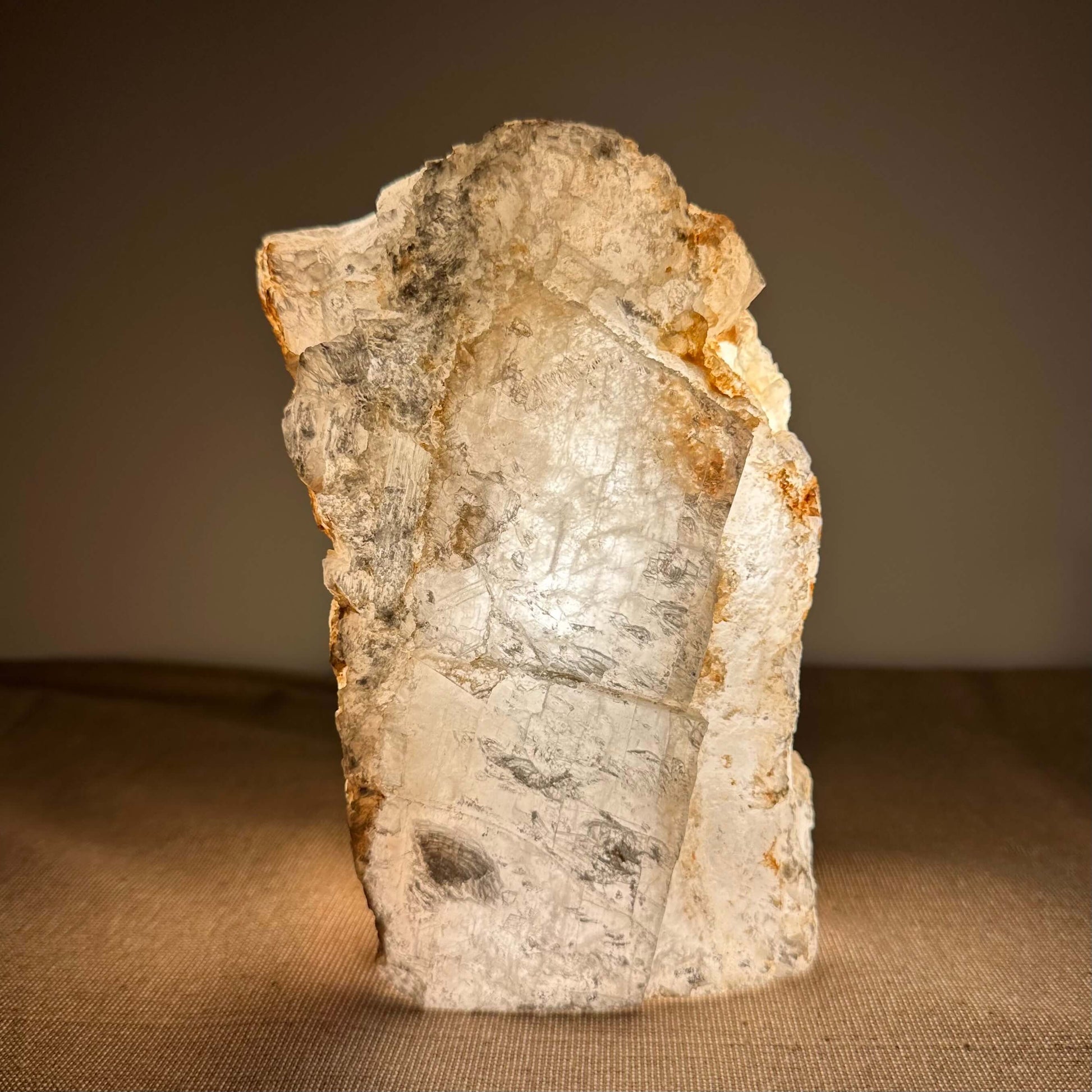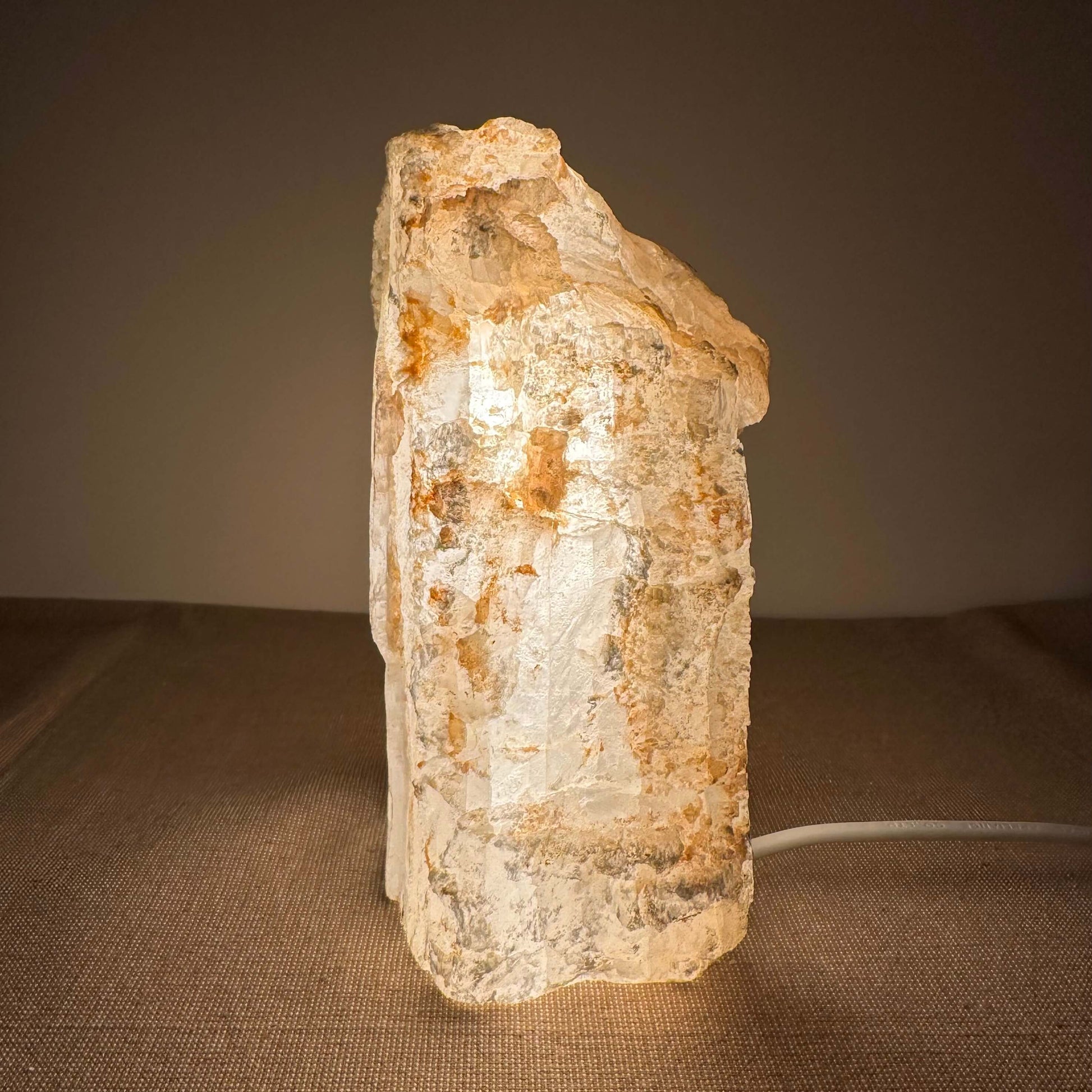 FÉ Luminous præsenterer en unik kollektion af håndskårne lamper fremstillet af sjældne selenitkrystaller fra Mexico. Lamperne kombinerer naturlig skønhed med elegant belysning, der skaber en beroligende og stemningsfuld atmosfære i ethvert rum. Med en neutral farvepalet og et organisk design, passer de tidløse lamper perfekt ind i alle typer interiør, og tilføjer både stil og ro. Hver bordlampe er udstyret med en roterende dæmpningskontakt, som giver mulighed for at justere lysintensiteten og skabe den ønskede stemning. LED-pæren er energieffektiv og dæmpbar (3W - 300 lumen), og hele lampens opbygning er i overensstemmelse med de gældende tekniske standarder for design, produktion og funktionalitet. FÈ Luminous er inspireret af naturens organiske former og skaber unikke, ikke-gentagelige stykker med karakter, der bringer naturen ind i dit hjem. Maria glas - også kendt som mariaglas eller marienglas selenit - er et mineral af calcium sulfat, der er dannet i Mexico gennem millioner af år i klare, delikate lagdelte krystaller.