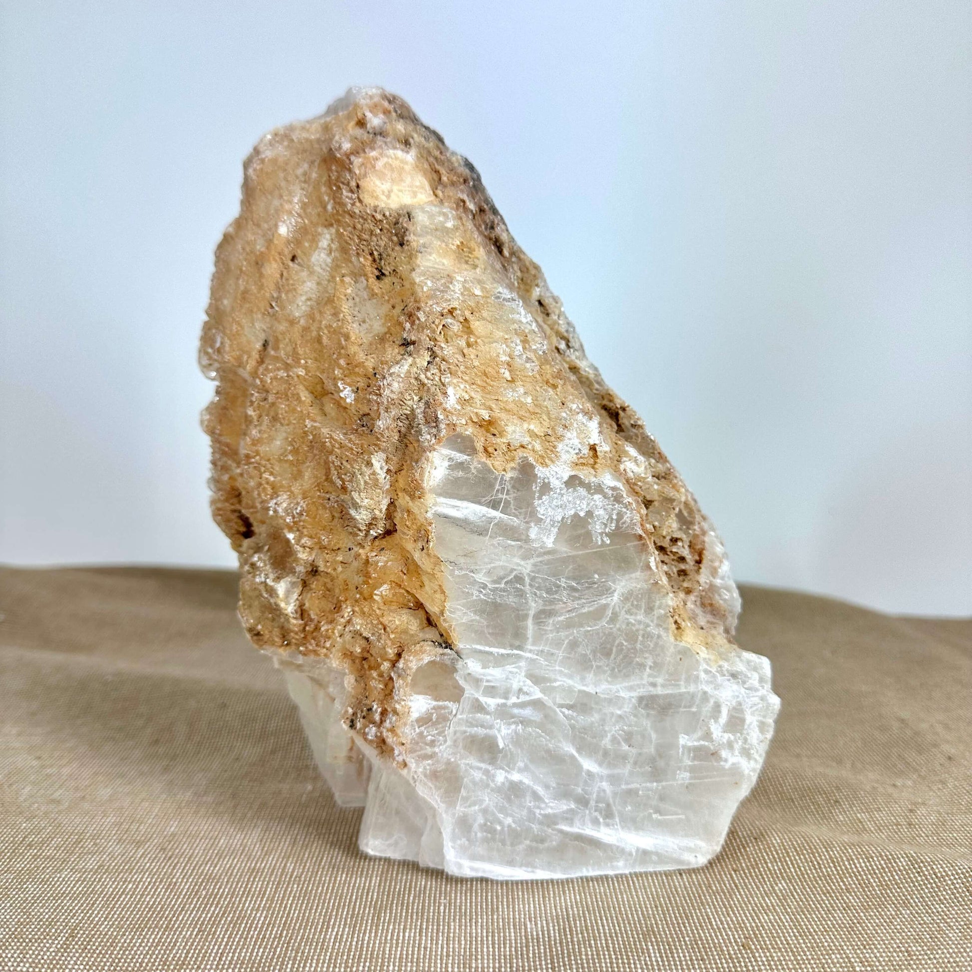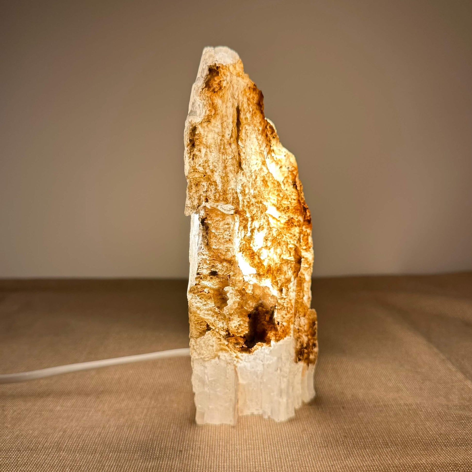 FÉ-lampen, er lavet af (mexicansk)selenit også kaldet "mariaglas". Det er en alsidig og harmoniserende lampe, der skaber en afslappende atmosfære. Den er perfekt til alle opholdsrum, da den er rensende. Det kan være stue, soveværelse, køkken, gang, behandlerrum . Selenit er kendt for sine rensende og helende egenskaber samt sin evne til at tilføre positiv energi til både vores chakraer og hjemmemiljø.