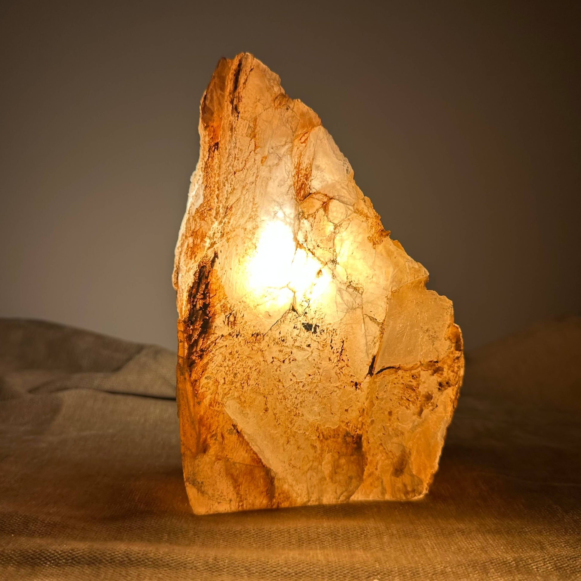 FÉ Luminous præsenterer en unik kollektion af håndskårne lamper fremstillet af sjældne selenitkrystaller fra Mexico. Lamperne kombinerer naturlig skønhed med elegant belysning, der skaber en beroligende og stemningsfuld atmosfære i ethvert rum. Med en neutral farvepalet og et organisk design, passer de tidløse lamper perfekt ind i alle typer interiør, og tilføjer både stil og ro. Hver bordlampe er udstyret med en roterende dæmpningskontakt, som giver mulighed for at justere lysintensiteten og skabe den ønskede stemning. LED-pæren er energieffektiv og dæmpbar (3W - 300 lumen), og hele lampens opbygning er i overensstemmelse med de gældende tekniske standarder for design, produktion og funktionalitet. FÈ Luminous er inspireret af naturens organiske former og skaber unikke, ikke-gentagelige stykker med karakter, der bringer naturen ind i dit hjem. Maria glas - også kendt som mariaglas eller marienglas selenit - er et mineral af calcium sulfat, der er dannet i Mexico gennem millioner af år i klare, delikate lagdelte krystaller. Egenskaber og fordele: FÉ-lampen, lavet af Mexicansk selenit, er en alsidig og harmoniserende lampe, der skaber en afslappende atmosfære. Den er perfekt som natlampe, til meditation og yoga. Selenit er kendt for sine rensende og helende egenskaber samt sin evne til at tilføre positiv energi til både vores chakraer og hjemmemiljø. FÈ-lampen leveres med en holdbar og udskiftelig 3W LED-pære (varm hvid) og en indbygget dæmper, så du nemt kan justere lyset og skabe den ønskede stemning. Nyd de positive vibes, uanset om lampen er tændt eller slukket. Lampen afgiver ingen varme og "sveder" ikke.