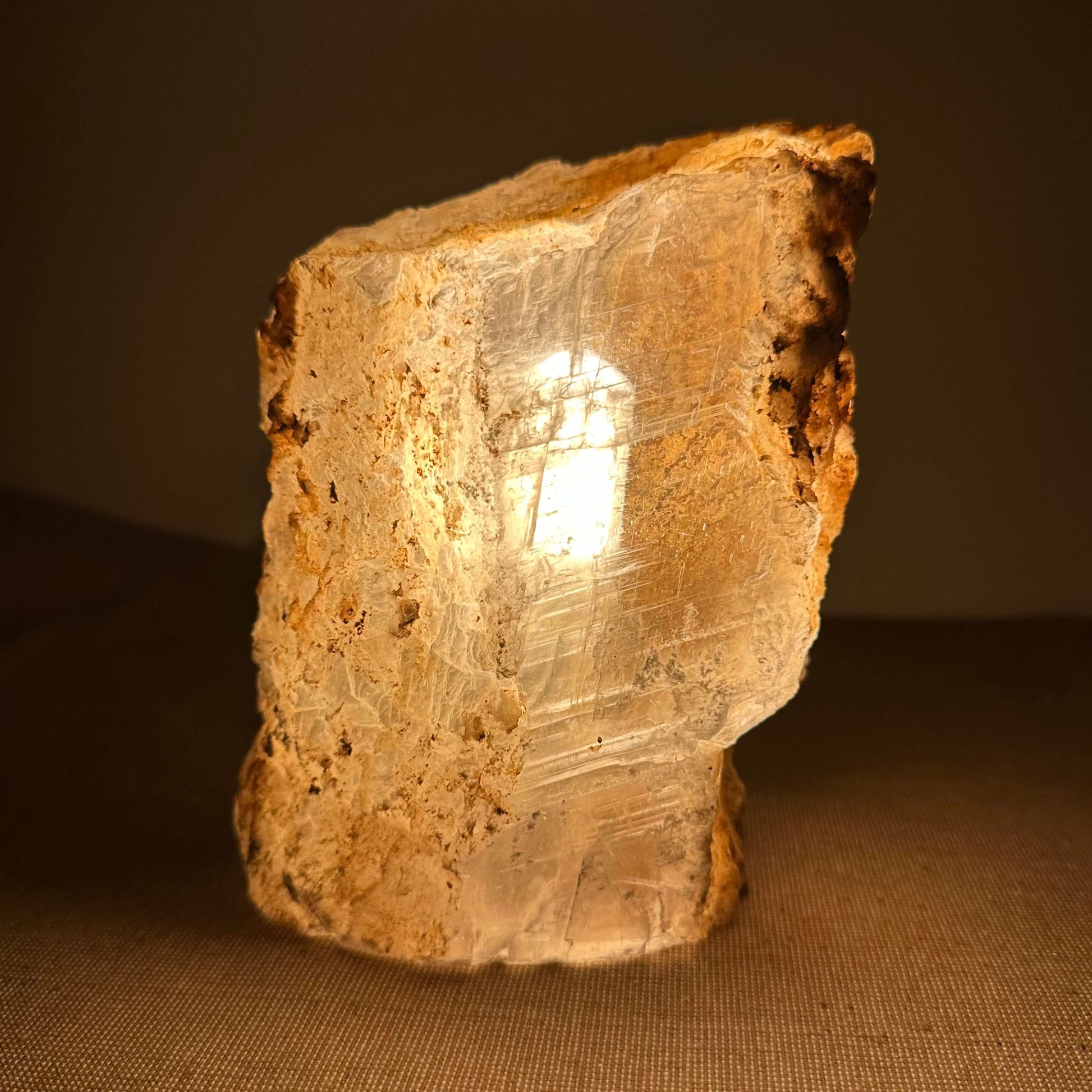 FÉ Luminous præsenterer en unik kollektion af håndskårne lamper fremstillet af sjældne selenitkrystaller fra Mexico. Lamperne kombinerer naturlig skønhed med elegant belysning, der skaber en beroligende og stemningsfuld atmosfære i ethvert rum. Med en neutral farvepalet og et organisk design, passer de tidløse lamper perfekt ind i alle typer interiør, og tilføjer både stil og ro. Hver bordlampe er udstyret med en roterende dæmpningskontakt, som giver mulighed for at justere lysintensiteten og skabe den ønskede stemning. LED-pæren er energieffektiv og dæmpbar (3W - 300 lumen), og hele lampens opbygning er i overensstemmelse med de gældende tekniske standarder for design, produktion og funktionalitet. FÈ Luminous er inspireret af naturens organiske former og skaber unikke, ikke-gentagelige stykker med karakter, der bringer naturen ind i dit hjem. Maria glas - også kendt som mariaglas eller marienglas selenit - er et mineral af calcium sulfat, der er dannet i Mexico gennem millioner af år i klare, delikate lagdelte krystaller. Egenskaber og fordele: FÉ-lampen, lavet af Mexicansk selenit, er en alsidig og harmoniserende lampe, der skaber en afslappende atmosfære. Den er perfekt som natlampe, til meditation og yoga. Selenit er kendt for sine rensende og helende egenskaber samt sin evne til at tilføre positiv energi til både vores chakraer og hjemmemiljø. FÈ-lampen leveres med en holdbar og udskiftelig 3W LED-pære (varm hvid) og en indbygget dæmper, så du nemt kan justere lyset og skabe den ønskede stemning. Nyd de positive vibes, uanset om lampen er tændt eller slukket. Lampen afgiver ingen varme og "sveder" ikke.De fantastiske egenskaber