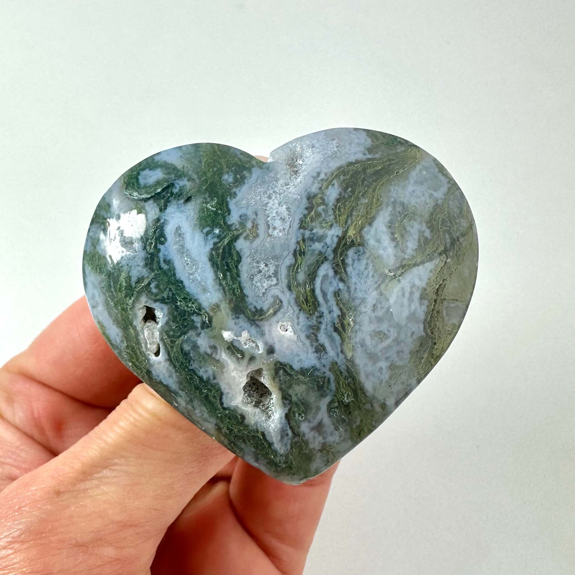 Mos agat hjerte er populært brugt som lommesten, i meditation og som et dekorativt element. Det fremmer personlige vækst gennem dybere refleksion og forbindelse til naturen. Brug det til meditation ved at placere det i nærheden eller holde det i dine hænder for at maximere dets energigivende egenskaber. Se mere i vores guide til meditation.
