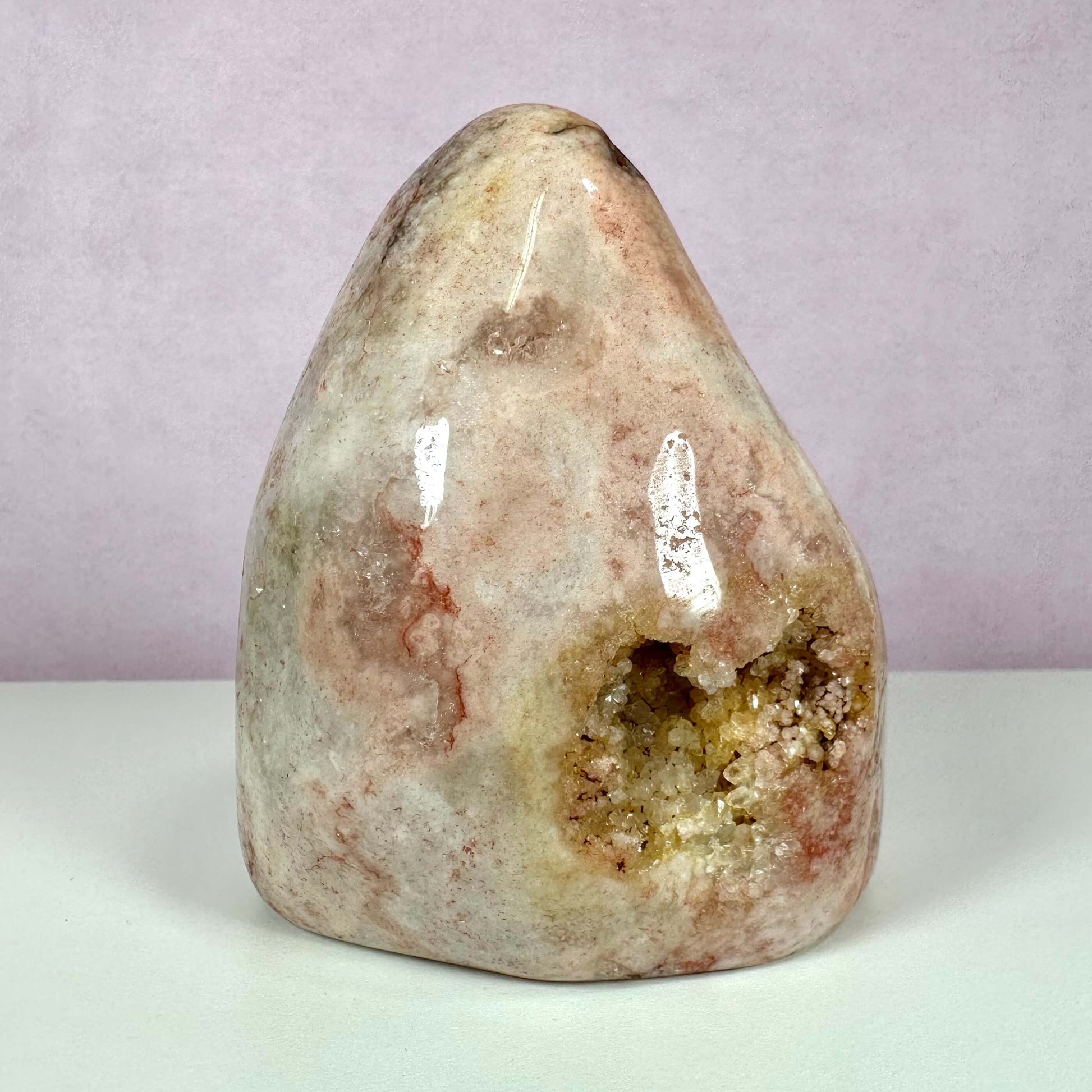 Pink ametyst er mere end blot en smuk rosa sten; den er en unik manifestation af kvarts med sjældne hematit-inklusions-egenskaber, som resulterer i dens eftertragtede bløde farveskær. Denne krystal er meget værdsat for sin evne til at aktivere hjertechakraet, fremme selvkærlighed, medfølelse og tilgivelse. Den udsender en beroligende energi, der kan lindre stress og fremme emotionel klarhed ved at rense negative tanker og bringe ro og balance i sindet.
