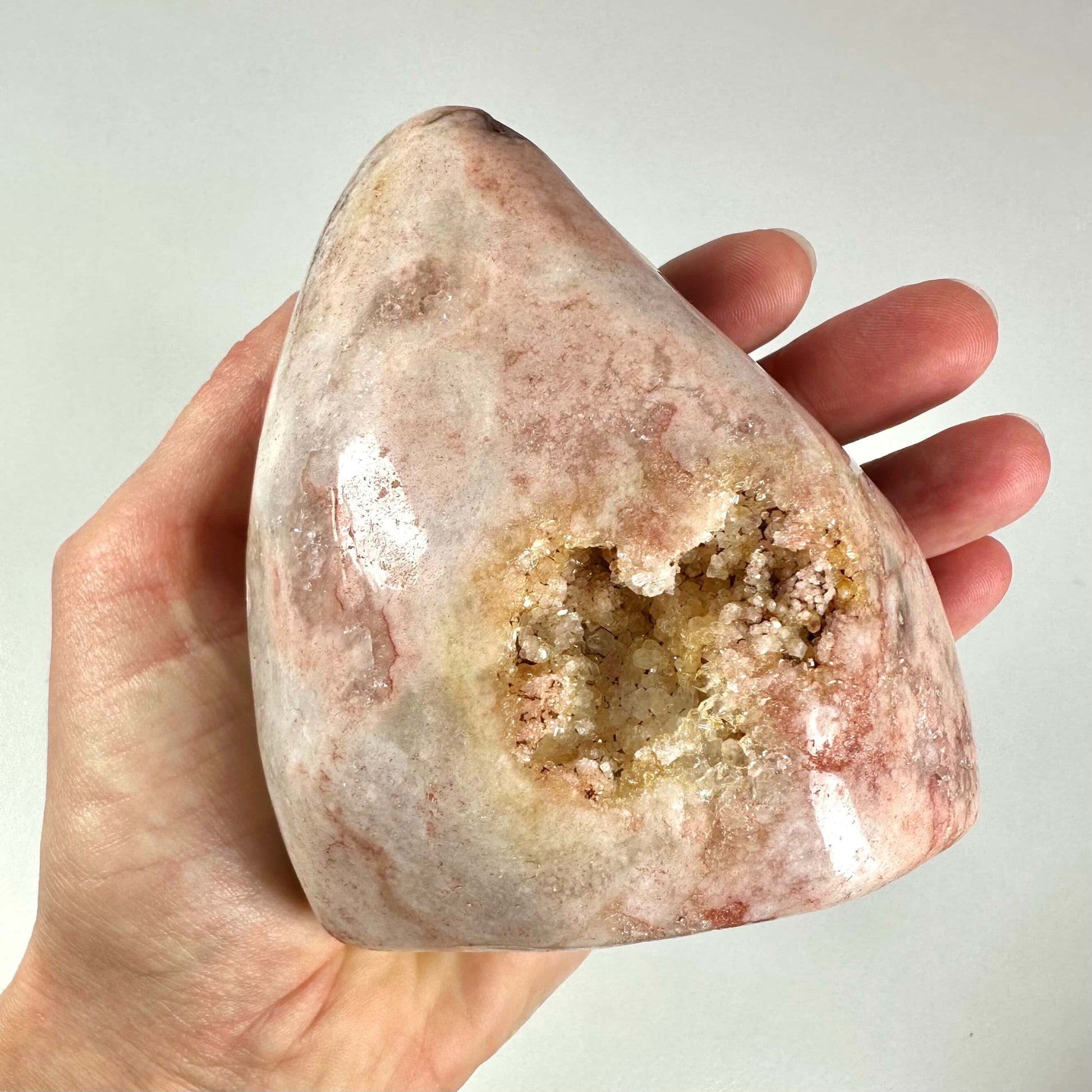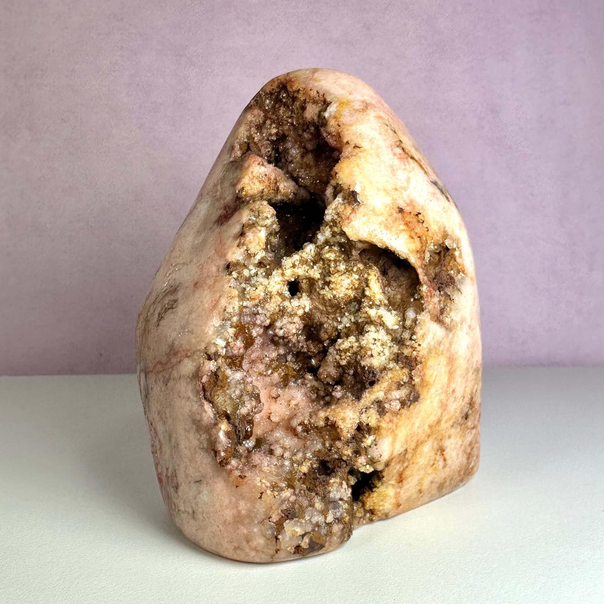Pink ametyst forekommer i forskellige former såsom geoder, klynger, polerede punkter eller plader, hver med sin egen unikke æstetik. Uanset form, er det den karakteristiske rosa farve, der gør den til en uforglemmelig tilføjelse til enhver krystalsamling.
