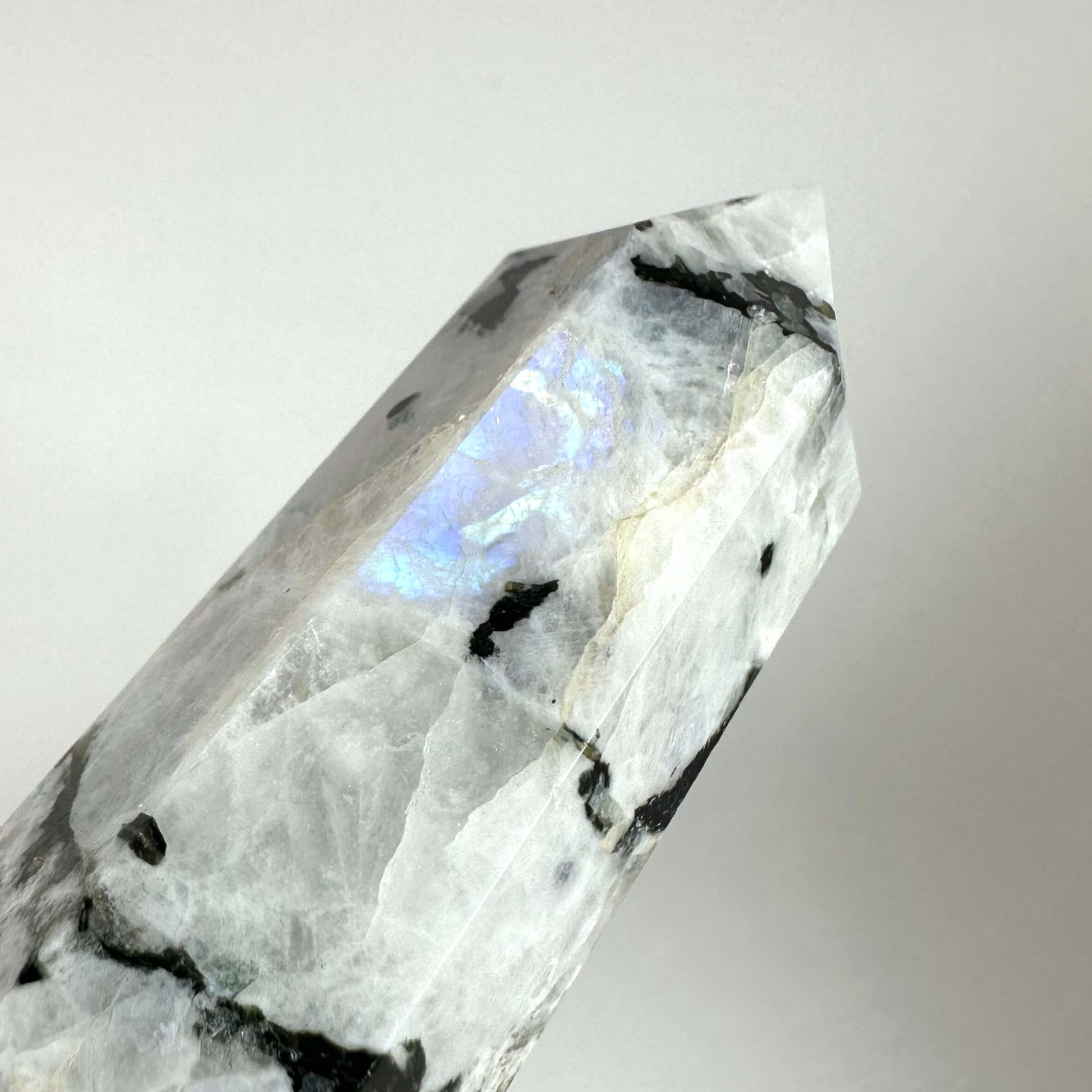 Oplev magien fra regnbue månesten tårn med beroligende energi og styrket intuition.