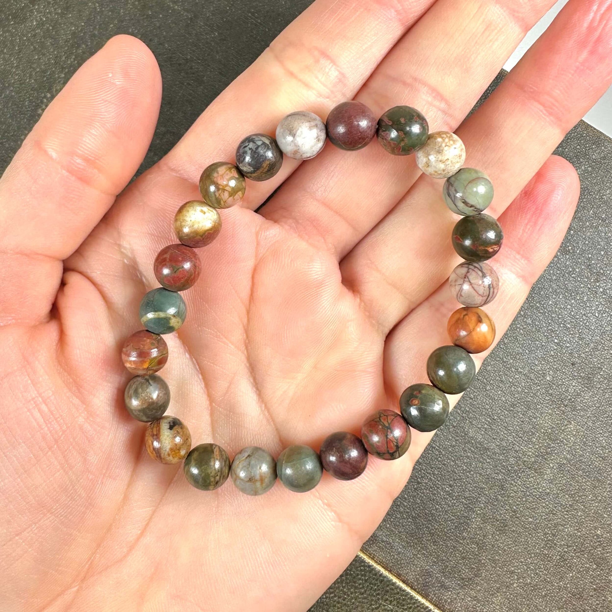 Rød Picasso jaspis er kendt for sine stærke spirituelle og metafysiske egenskaber. Denne smukke sten siges at stimulere kreativitet og inspiration, hvilket gør den til en favorit blandt kunstnere og kreative sjæle. Rød Picasso jaspis anses for at være en kraftfuld støtte ved emotionel healing, da den hjælper med at frigøre følelsesmæssige sår og mindsker stress. Brug af armbåndet kan også fremme jordforbindelse og stabilitet, hvilket gør det til et uundværligt værktøj til grounding og energistabilisering.