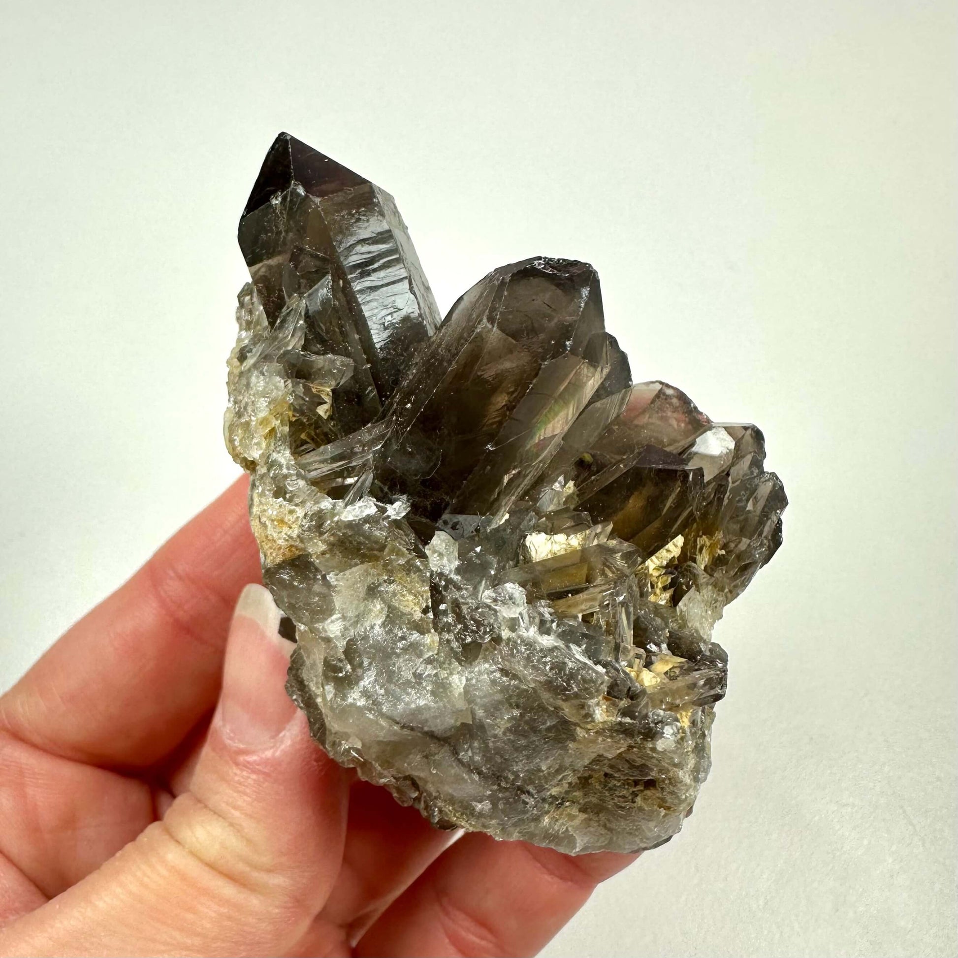Der findes flere varianter af røgkvarts, som adskiller sig i farve og intensitet. Den mørkeste variant, Morion, er særligt populær for sine stærke beskyttende egenskaber. Lette røgkvarts klynger er også populære for deres blide energi og evne til at bringe lys til mørkere områder af sindet.