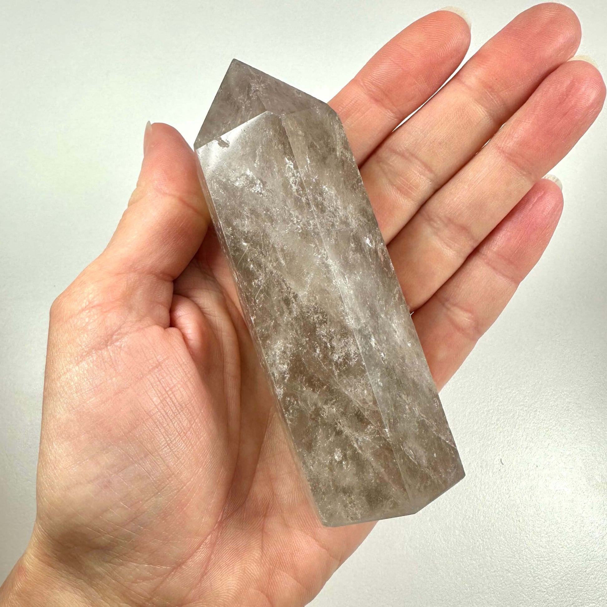 Røgkvarts tårn giver jordforbindelse og ro i sindet under meditation og daglige ritualer. Transformere negatie tanker til positive.