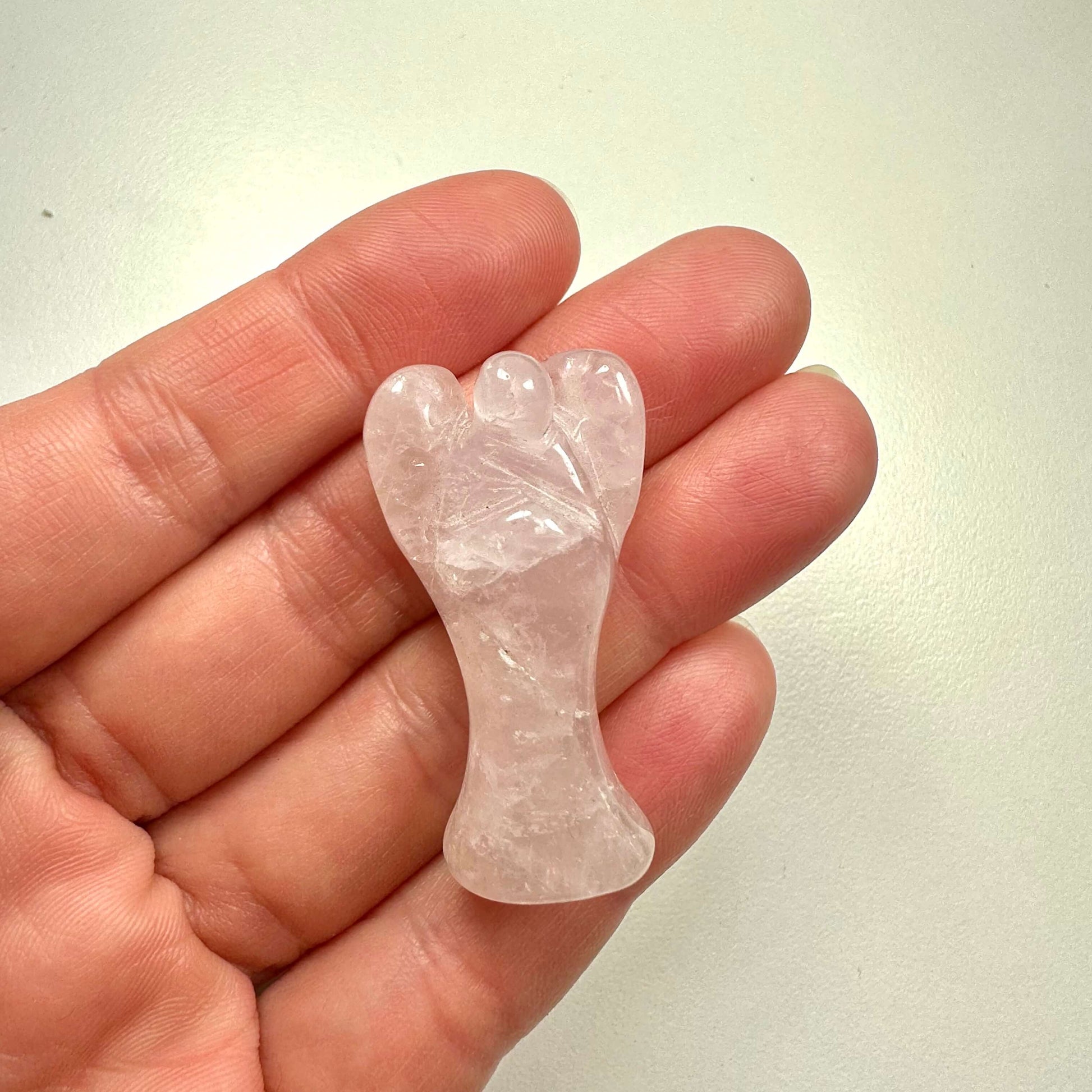 Rosenkvarts engel er en udsøgt kombination af symbolik og energi, der bringer blidhed og kærlighed ind i dit liv. Rosenkvarts er kendt for sine betagende rosa nuancer, og dens evne til at frembringe følelsesmæssig helbredelse og harmoni. Denne engleformede krystal synes at resonere med hjertechakraet, hvilket gør den til en ideel følgesvend for dem, der søger kærlighed og forståelse.