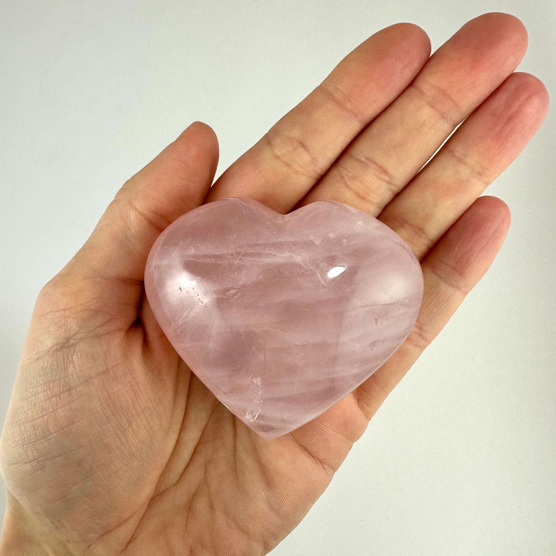 Rosenkvarts hjerte Nr 4 er en kraftfuld katalysator, når det kommer til at øge kærlighedsenergier både indadtil og udadtil. Kendt som 'kærlighedsstenen', er Rosenkvarts forbundet med at fremme ubetinget kærlighed og åbne for dyb empati og medfølelse. Med sin blide, beroligende energi, er den ideel til dem, der ønsker at fjerne negativitet og opbygge stærkere relationer. Rosenkvarts er stærkt forbundet med hjertechakraet og opmuntrer til selvkærlighed, harmoni, balance og følelsesmæssig healing.