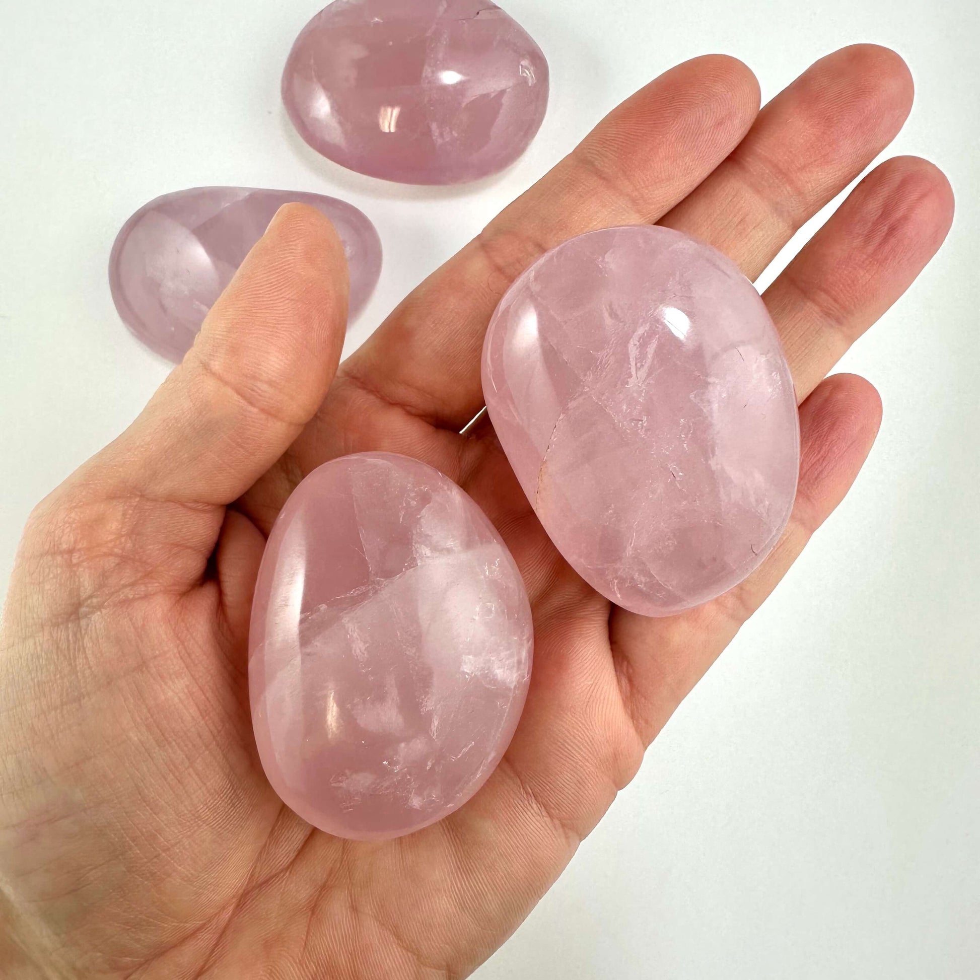 Rosenkvarts findes i både polerede og rå former. Jumbo-udgaven er særligt bemærkelsesværdig for sin store størrelse, som kan veje mellem 100-400 gram eller mere, og måle mellem 5-11 cm. Disse store sten kan endnu stærkere fremhæve stenens rosa nuancer og dybde, og kan også inkludere unikke mønstre eller kombinationer med andre mineraler.