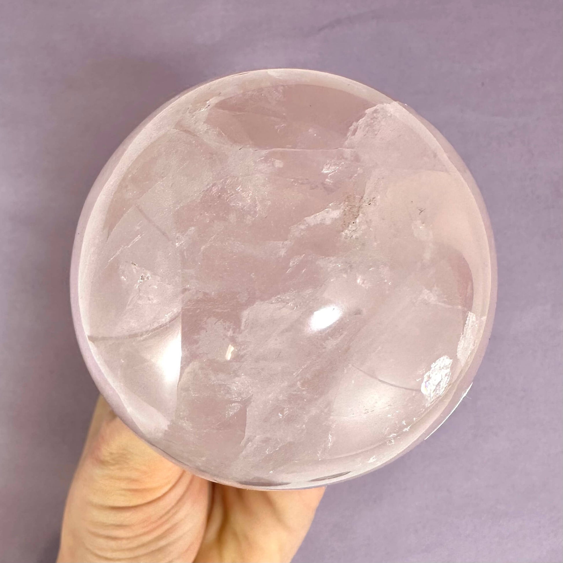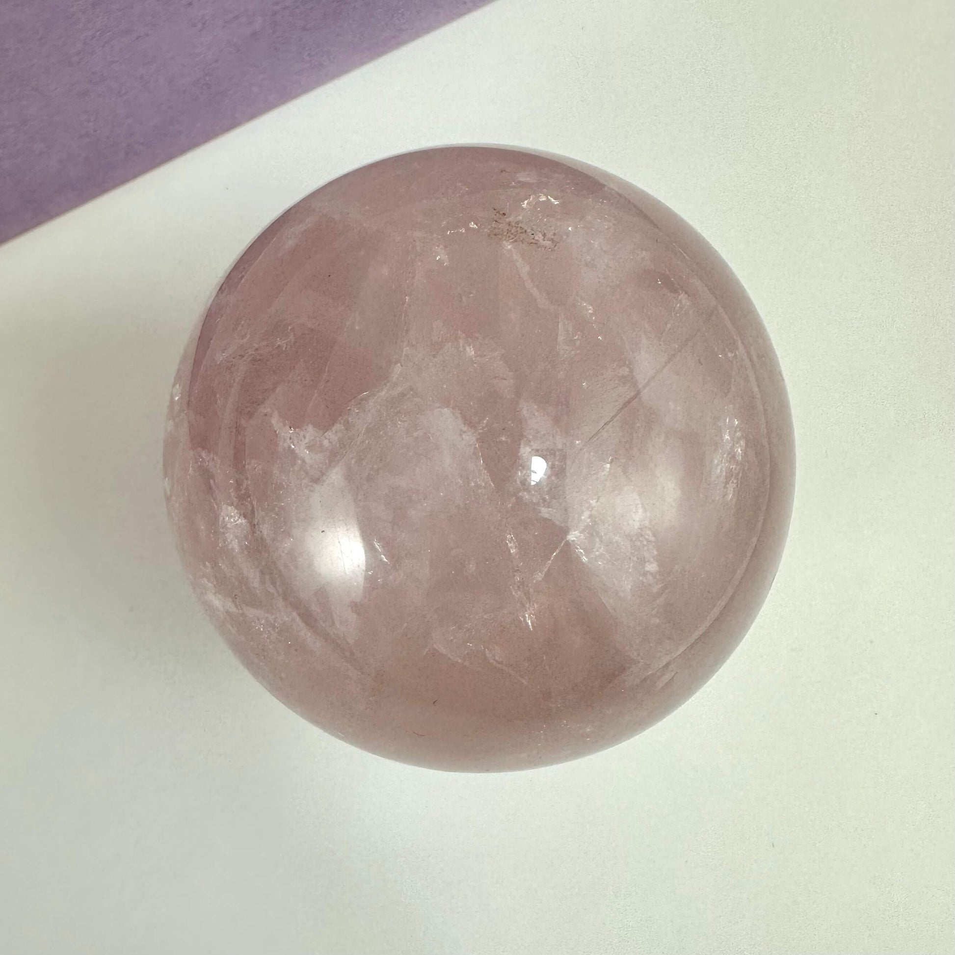 Oplev rosenkvarts kuglens blide og harmoniske energi, ideel til meditation og følelsesmæssig balance.