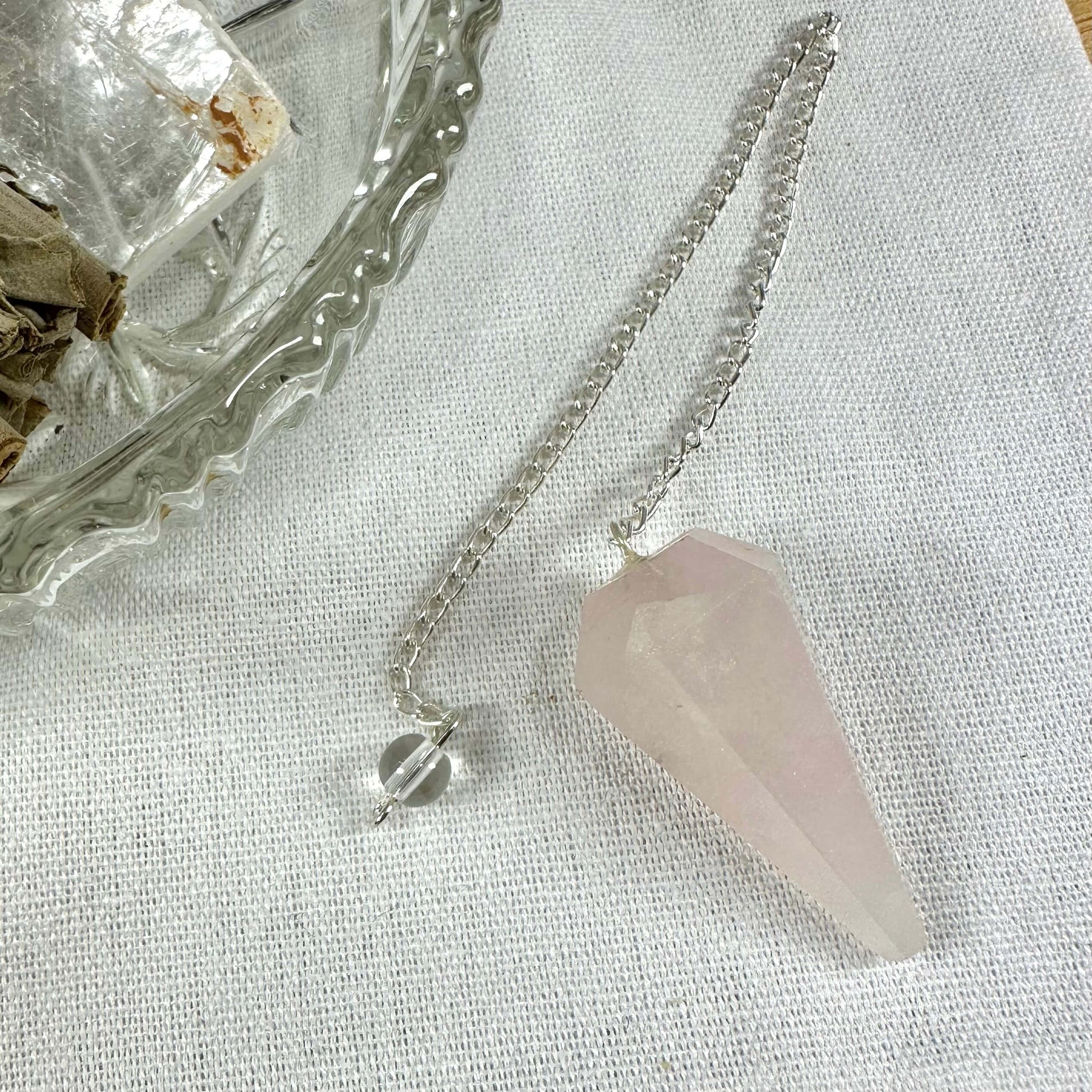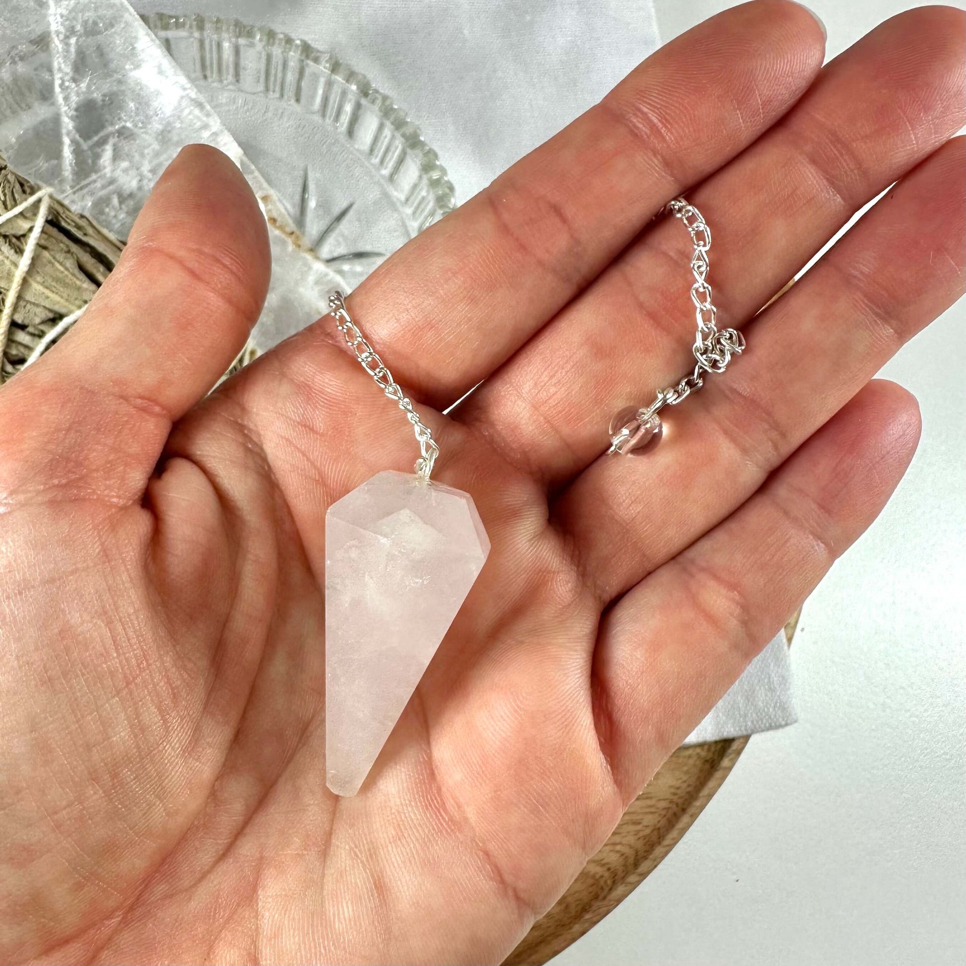 Oplev blid energi med et rosenkvarts pendul, ideelt til at udvikle intuition og til at skabe følelsesmæssig balance.