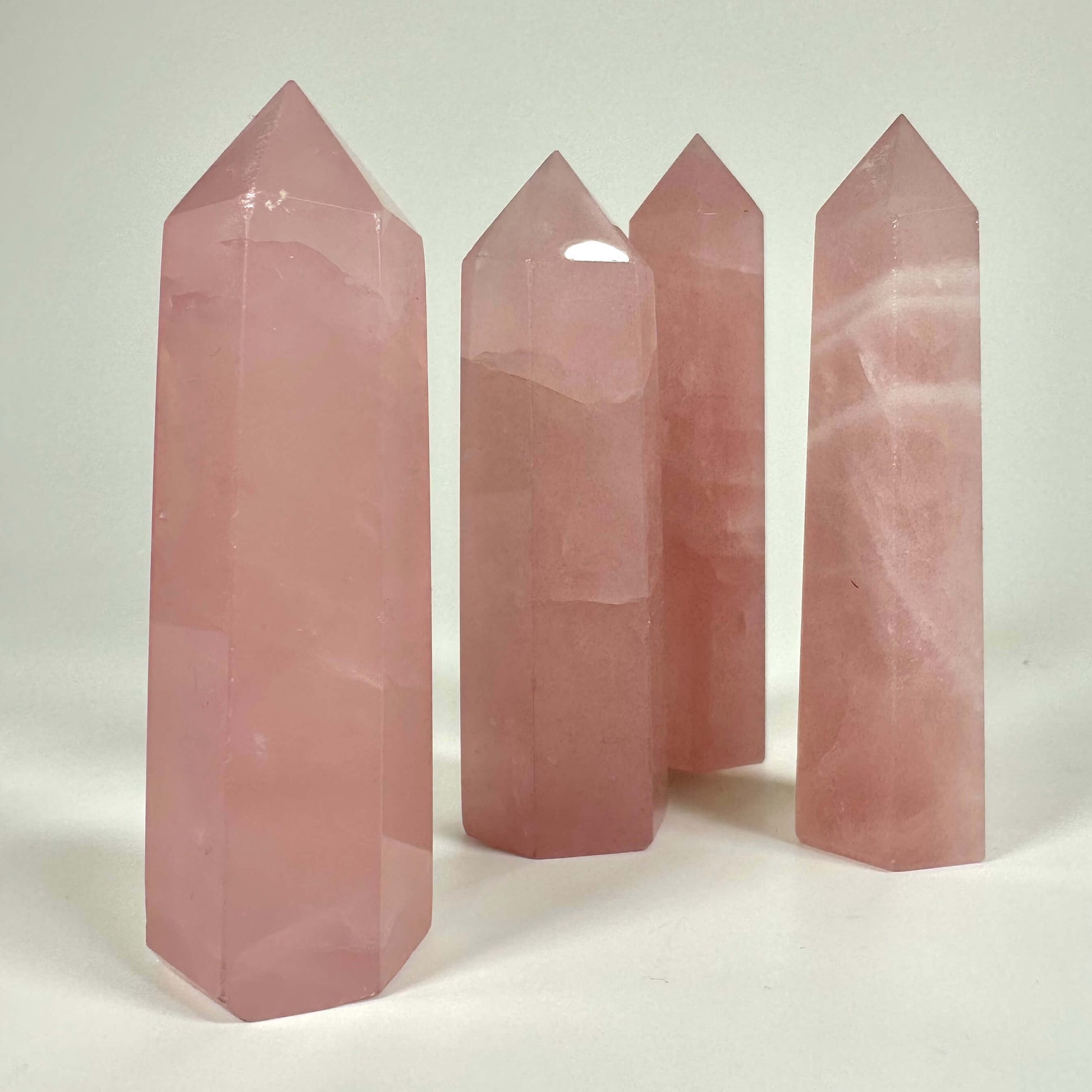 Mens den mest kendte form er den klassiske lyserøde, findes rosenkvarts også i varianter, hvor farven varierer lidt afhængigt af mineralindholdet. De fleste rosenkvarts tårne er poleret for at fremhæve deres skønhed.