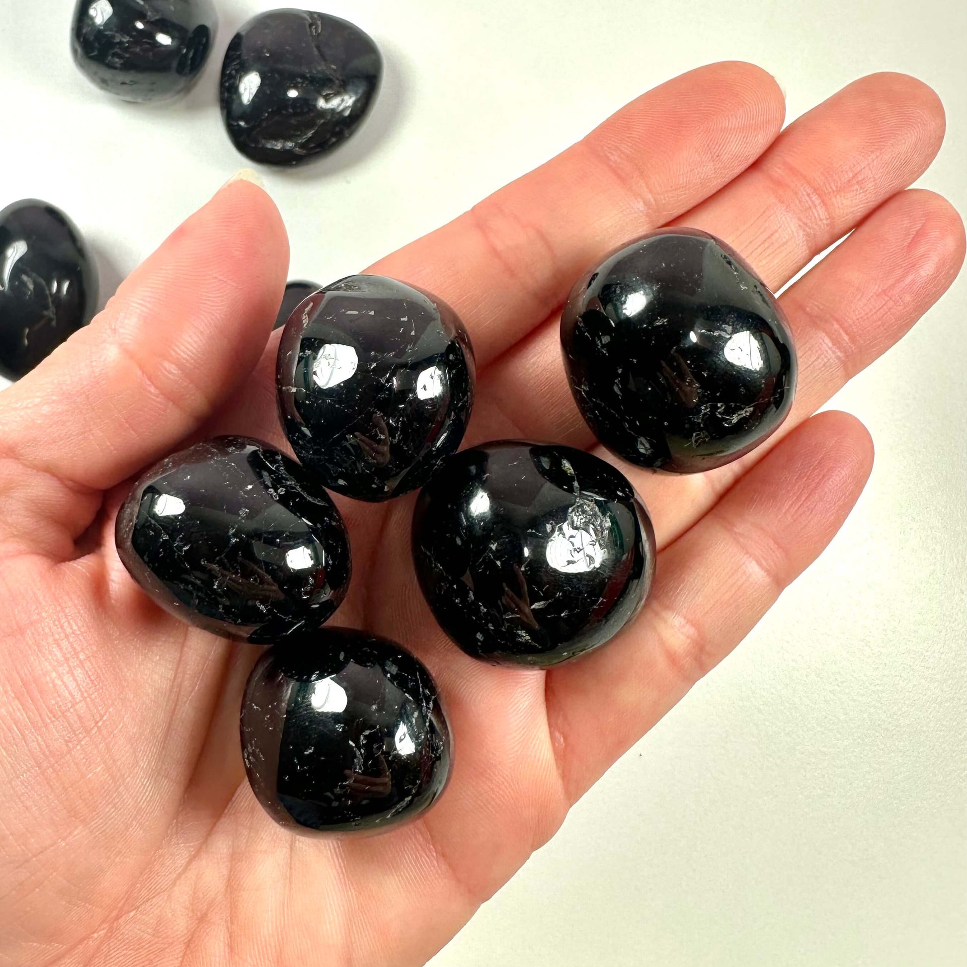 Sort turmalin findes i forskellige former og størrelser, herunder polerede lommesten, rå sten og større palmstones. De polerede varianter og armbånd er ideelle til daglig bæring, mens de rå sten kan tjene som kraftfulde fokusobjekter i hjemmet.