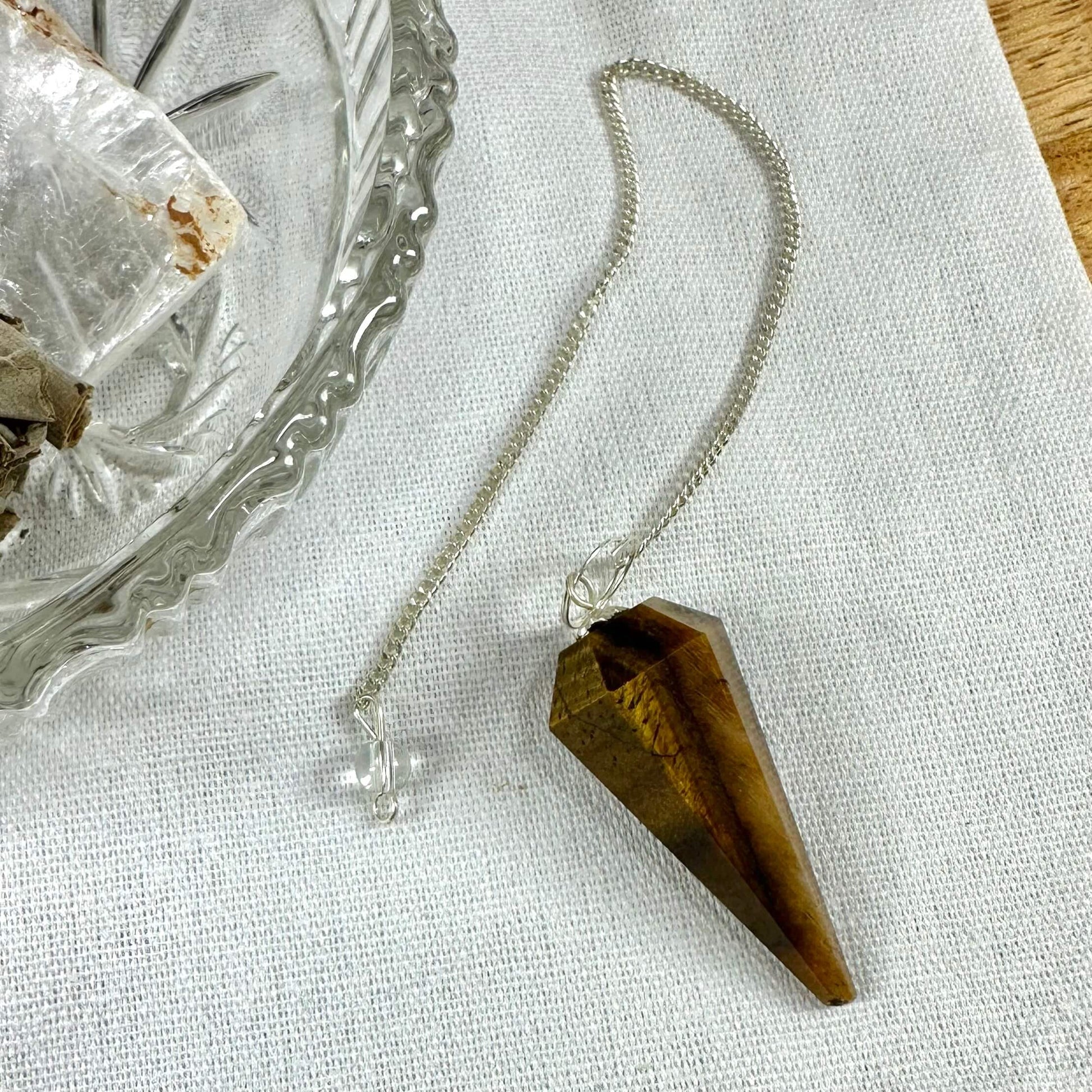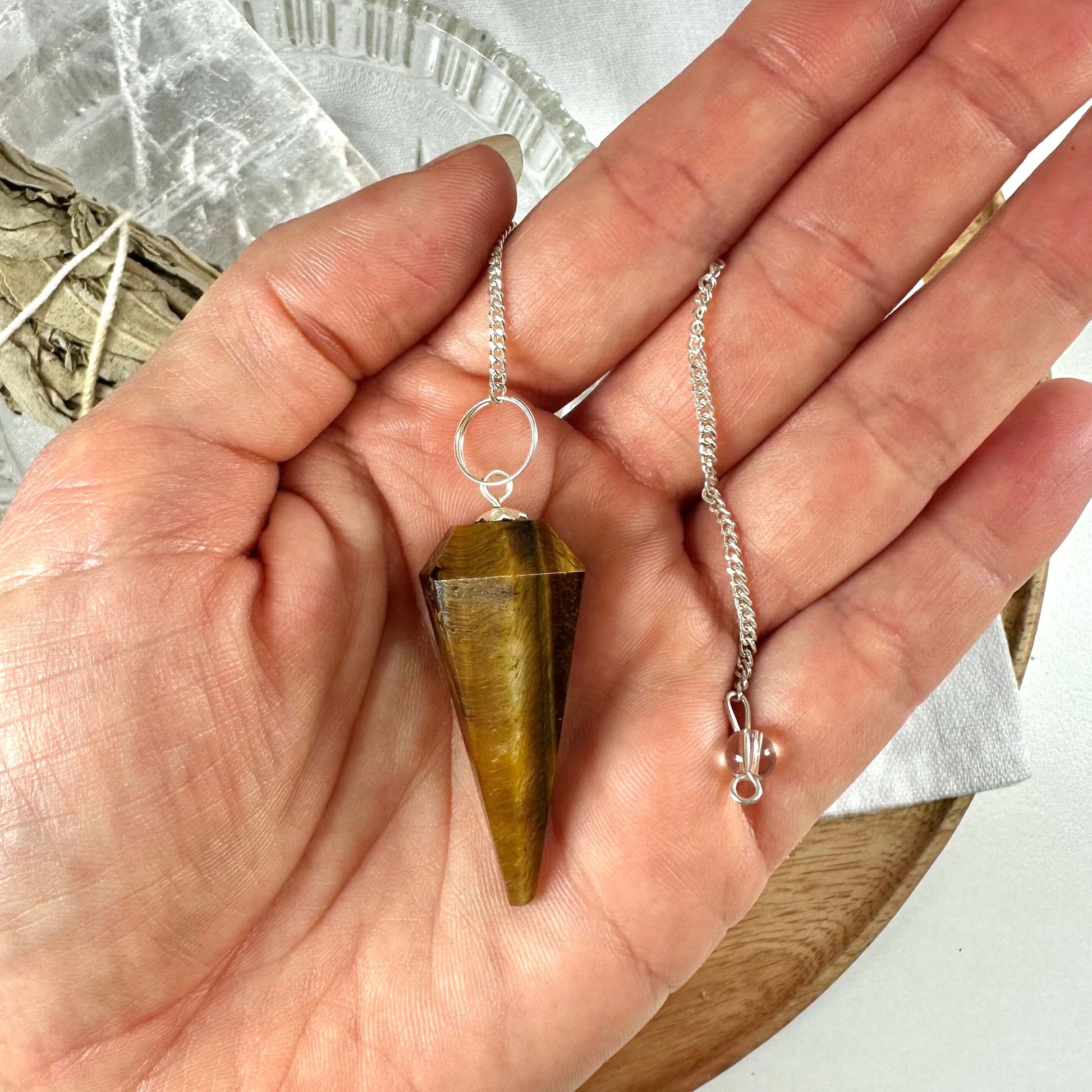 Tigerøje pendul er kendt for sine kraftfulde metafysiske egenskaber inden for krystalhealing og spirituel praksis. Denne krystal med sin gyldne og brune chatoyance symboliserer styrke, mod og beskyttelse. Traditionelt set bruges tigerøje til at fremme mental klarhed, fokus og samtidig beskytte mod negative energier. Det menes at styrke viljestyrke og hjælpe med at forankre din energi, hvilket gør det ideelt for beslutningstagning og stressreduktion.